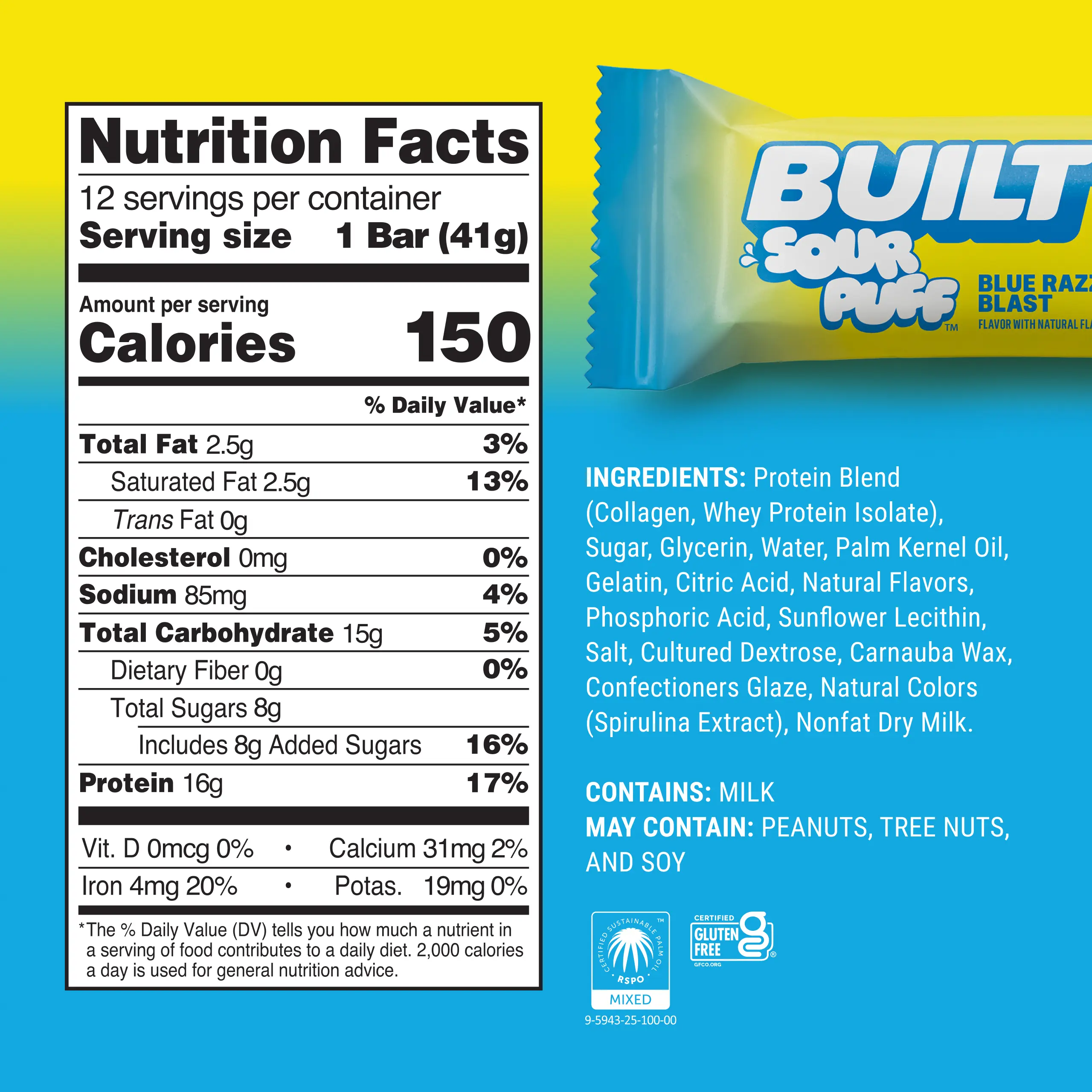 ·PROTEIN PACKED: BUILT Sour Puff Snack Bars bring 16g of vital protein, making it one of the best protein bars supporting your workout. Enjoy protein bars for all-day energy