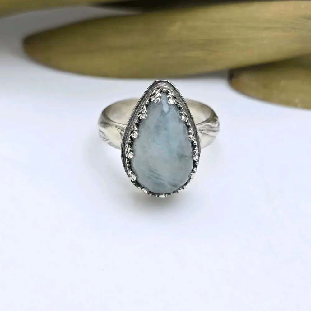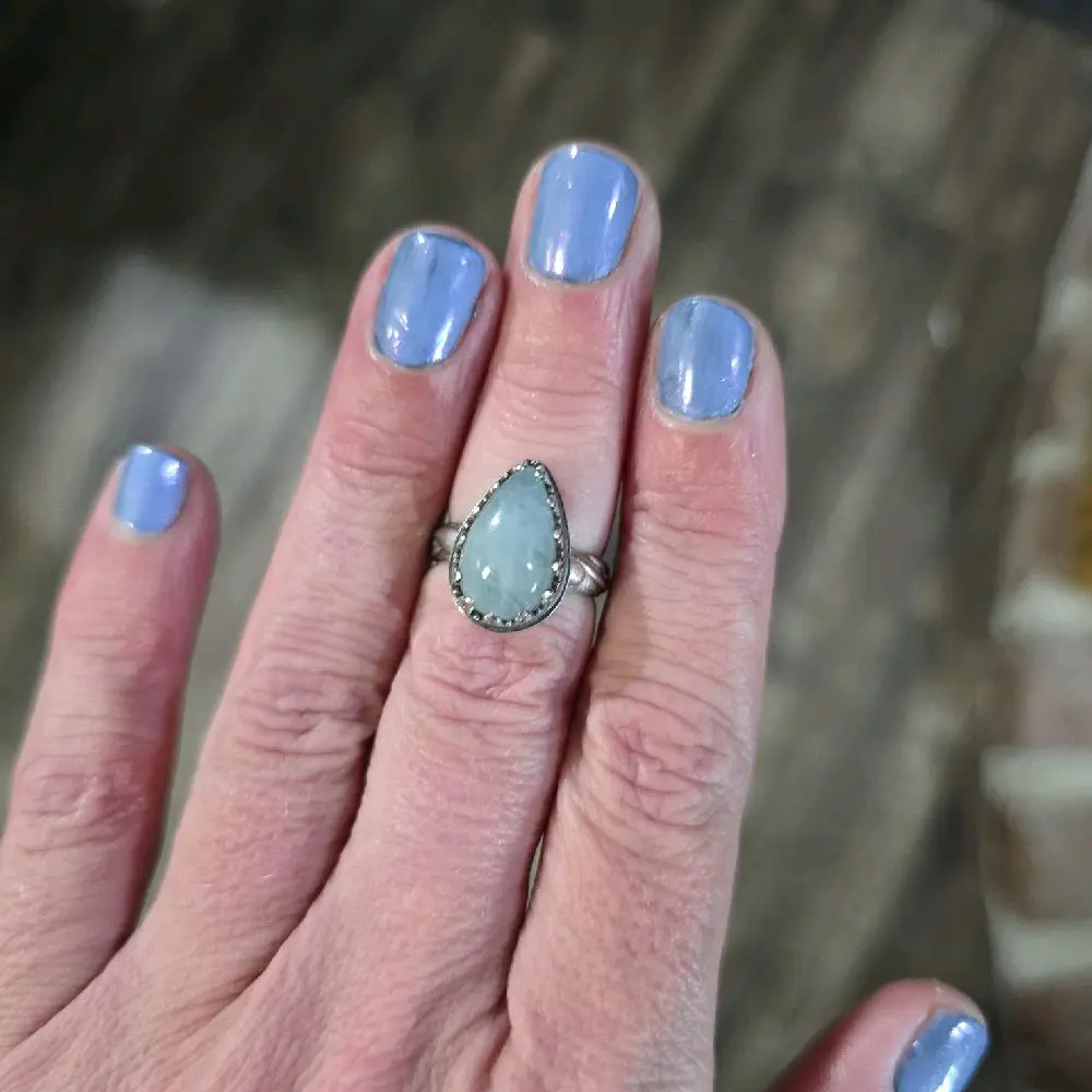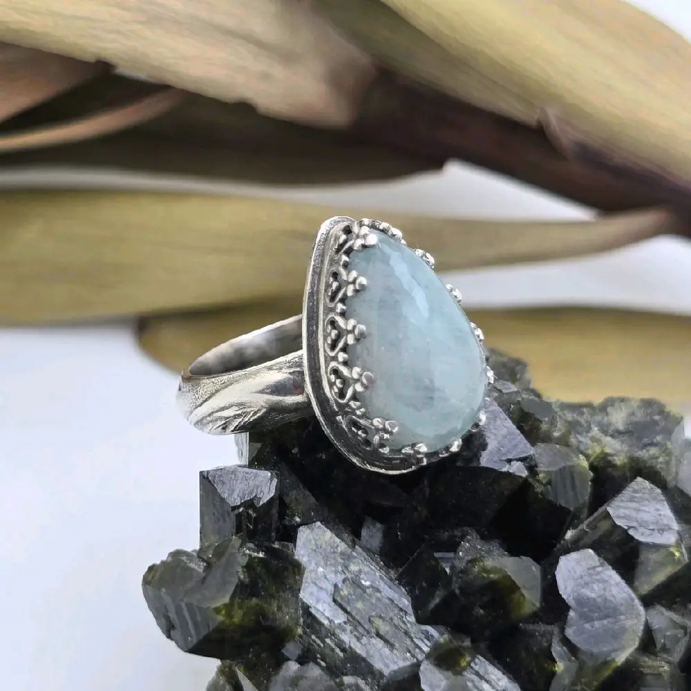 ·Teardrop cut, pale blue Aquamarine is the centerpiece.