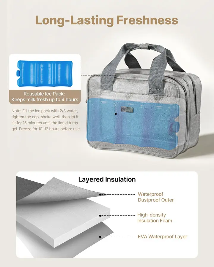 Insulated Freshness: Two foil-lined pockets and a waterproof bottom of the breast feeding bag keep milk cool for up to 4 hours with ice packs. Moms can count on steady insulation to lock in freshness anywhere