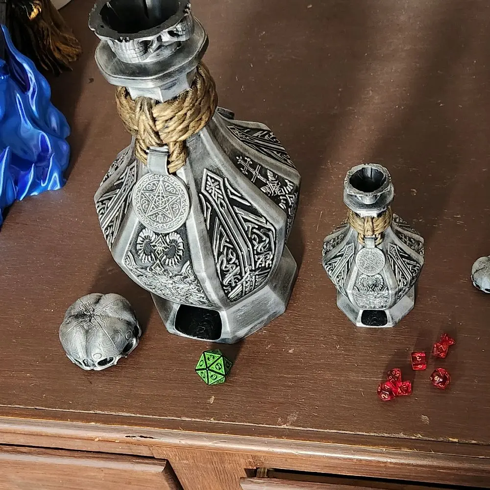 With this Skull Jar, your gaming sessions will be more organized and visually appealing. The jar's design complements the immersive experience of DND and tabletop RPGs. Enjoy a blend of functionality and style in your gaming accessories.