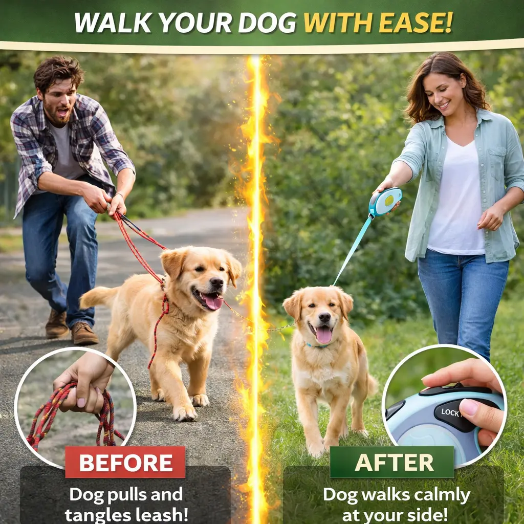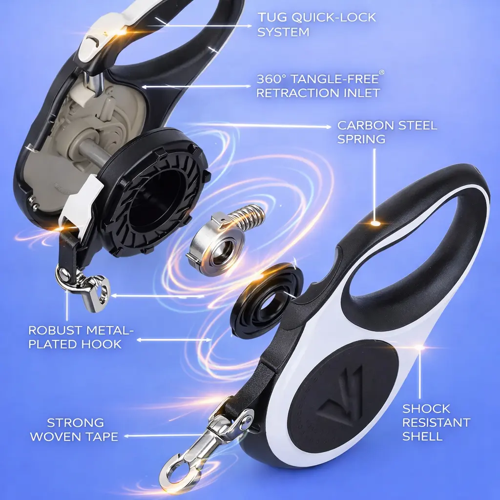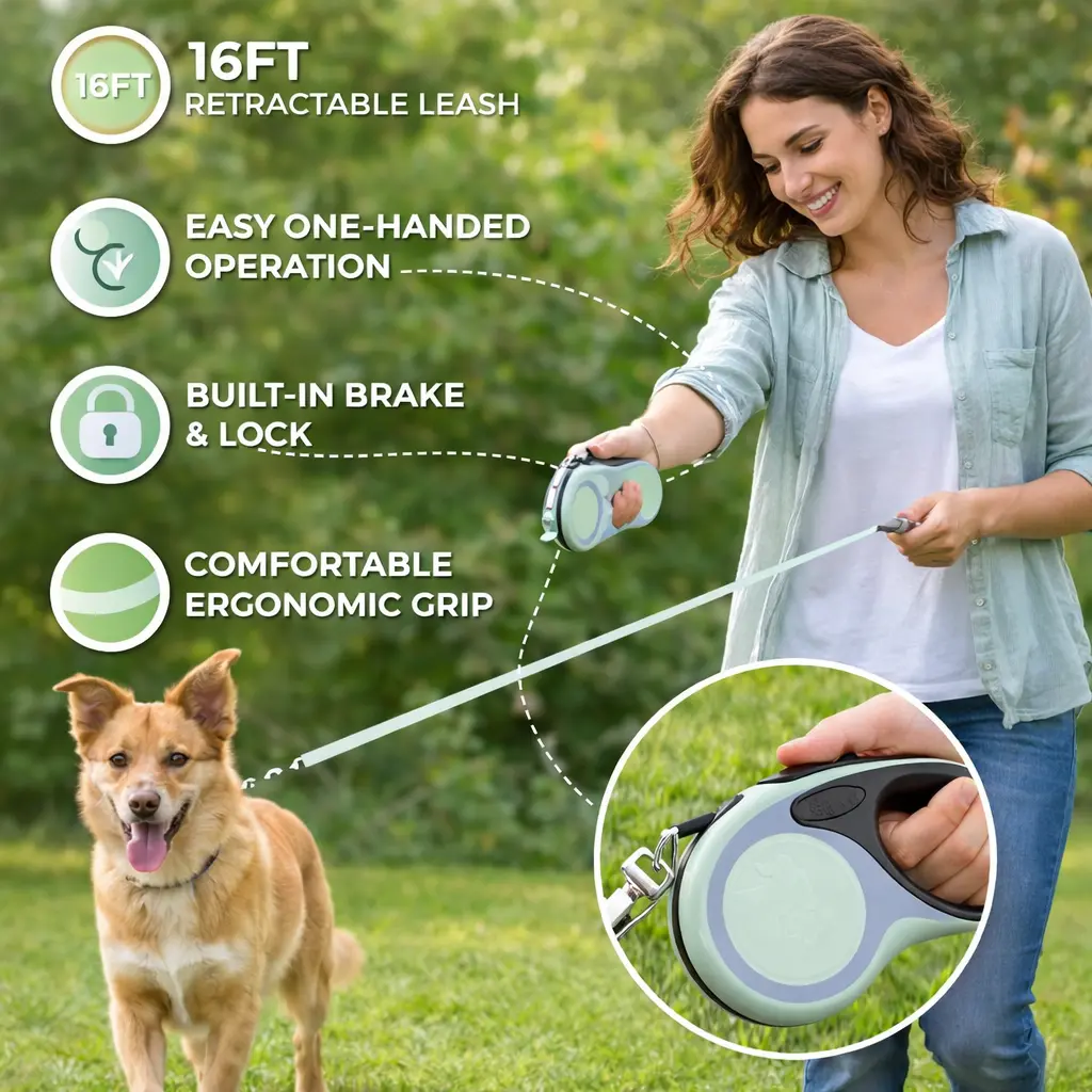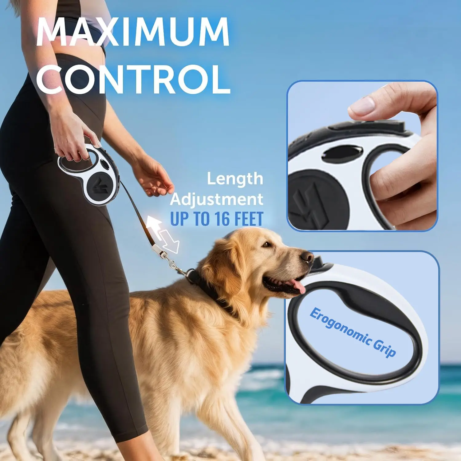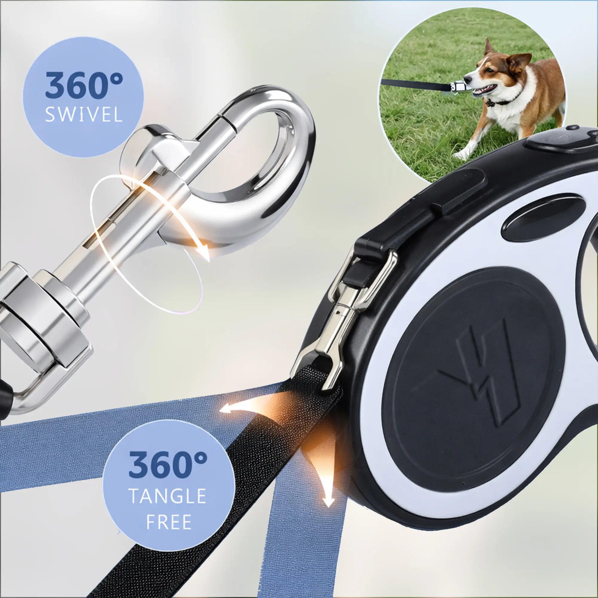 360° Tangle-Free Retractable Dog Leash 16ft Strong Nylon Tape One-Hand Brake Lock for Small Medium Dogs & Cats Anti-Pull Smooth Retraction