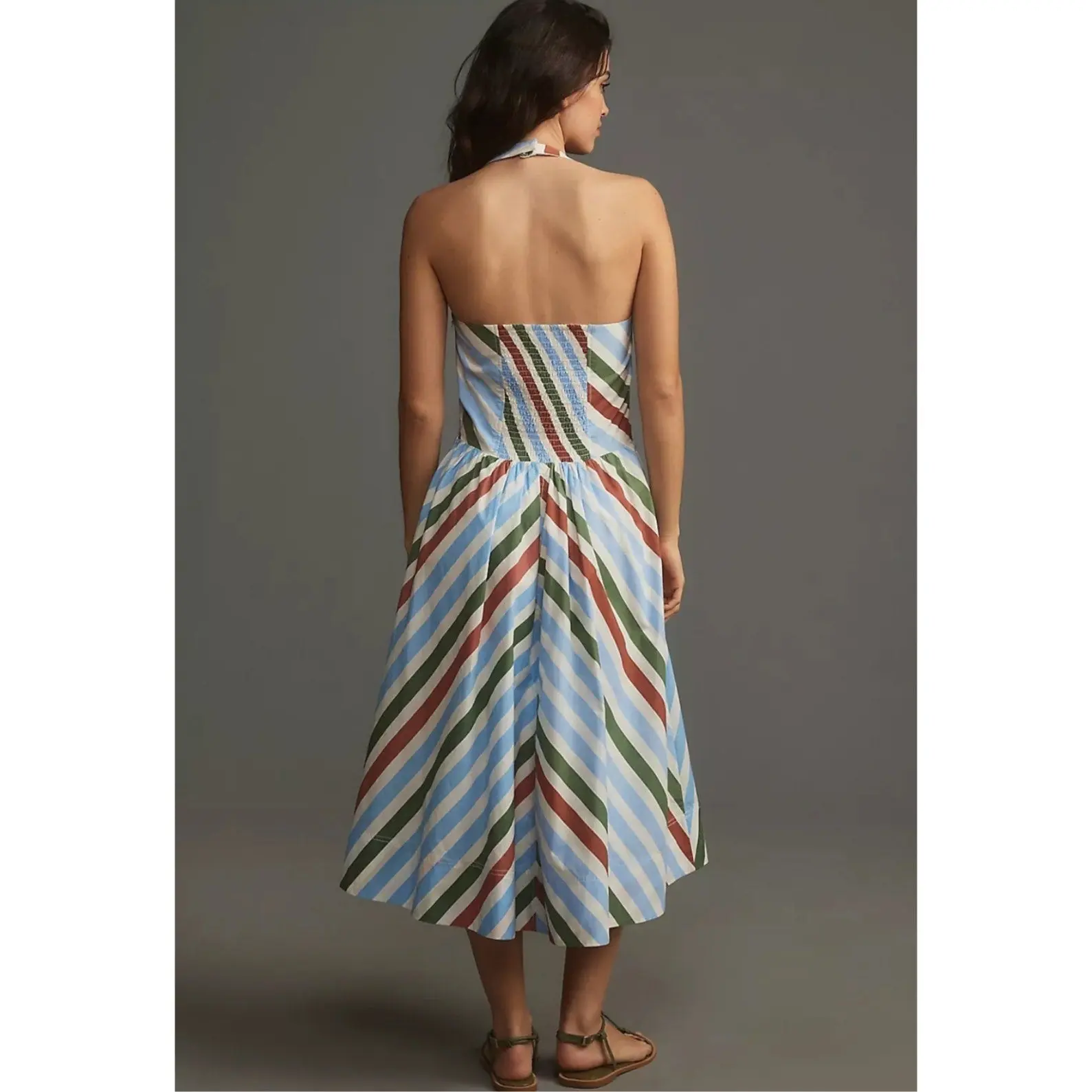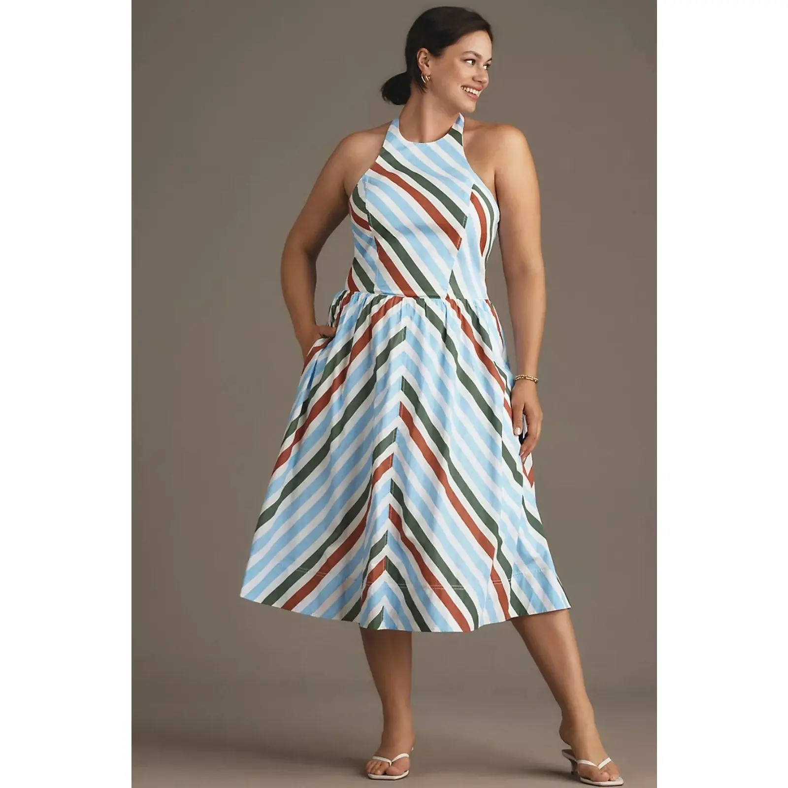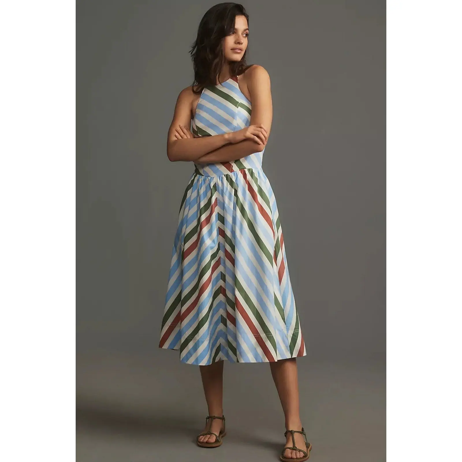 Anthropologie Maeve Halter Midi Sundress XXS Neutral Striped Motif
