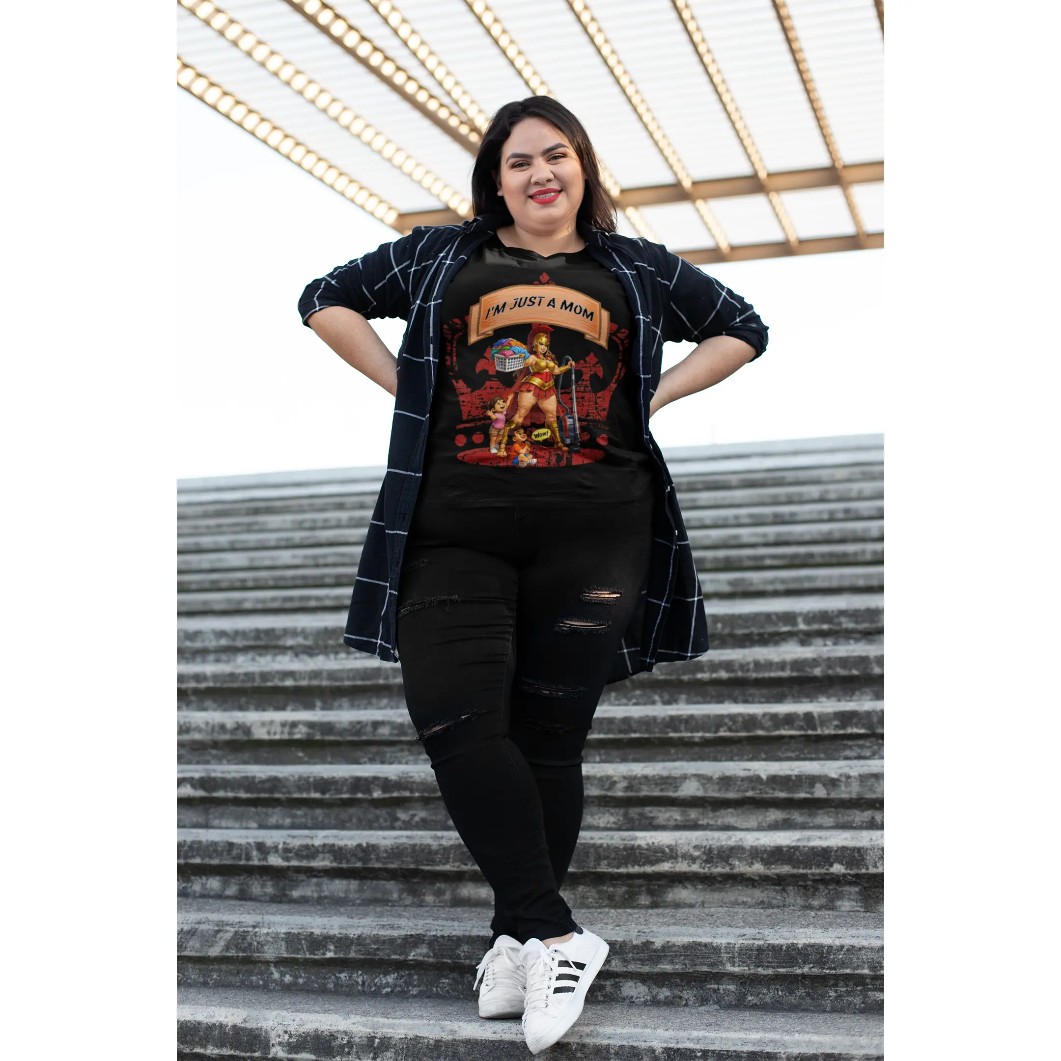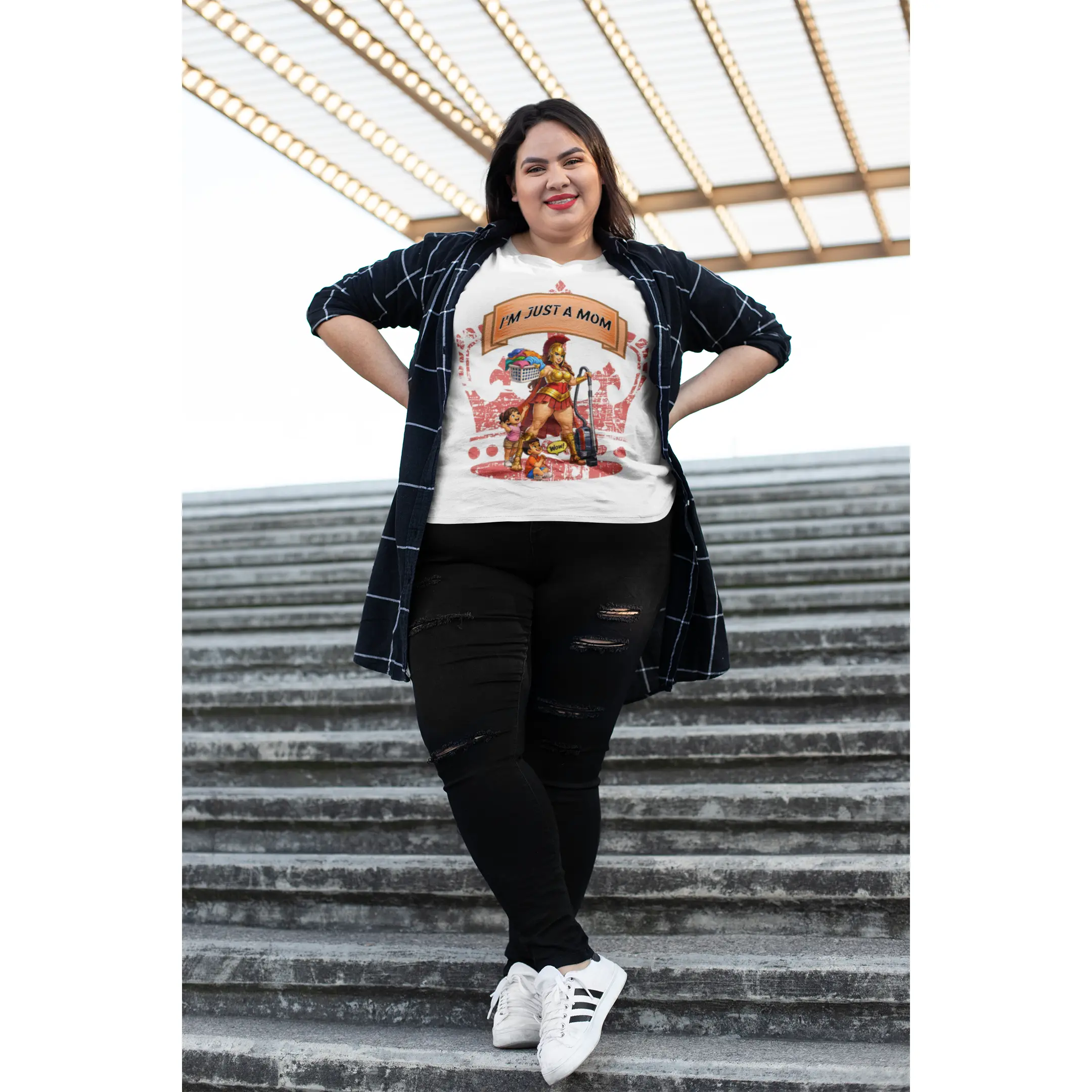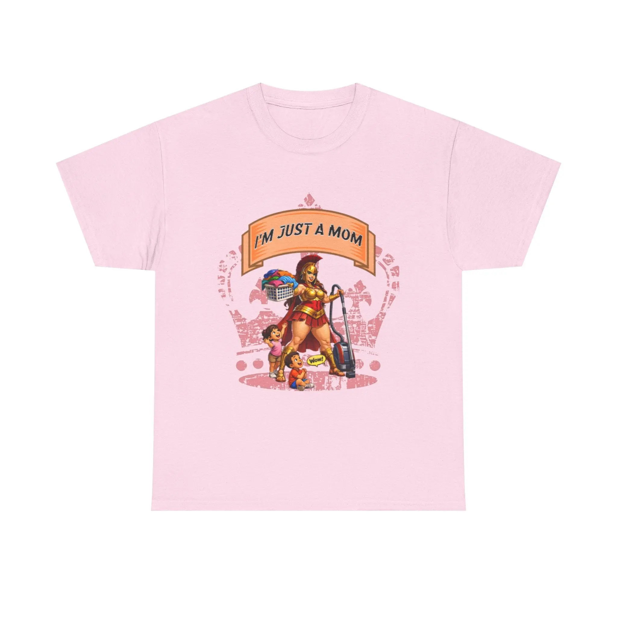 This relaxed cotton tee carries a playful, confident voice for busy moms who do it all. The bold, colorful center artwork — a strong, superhero-like mom balancing household tools, groceries, and a child — reads “I’m Just A Mom” with tongue-in-cheek pride. Soft, breathable cotton and a classic crew neckline keep it comfortable through school runs, park days, and coffee breaks. The understated white canvas lets the vibrant print pop, so the shirt reads like a wearable declaration: everyday chaos handled with humor and heart. Wear it while chasing toddlers, running errands, or lounging at home — it’s a casual staple that feels lived-in and true to the rhythm of motherhood.