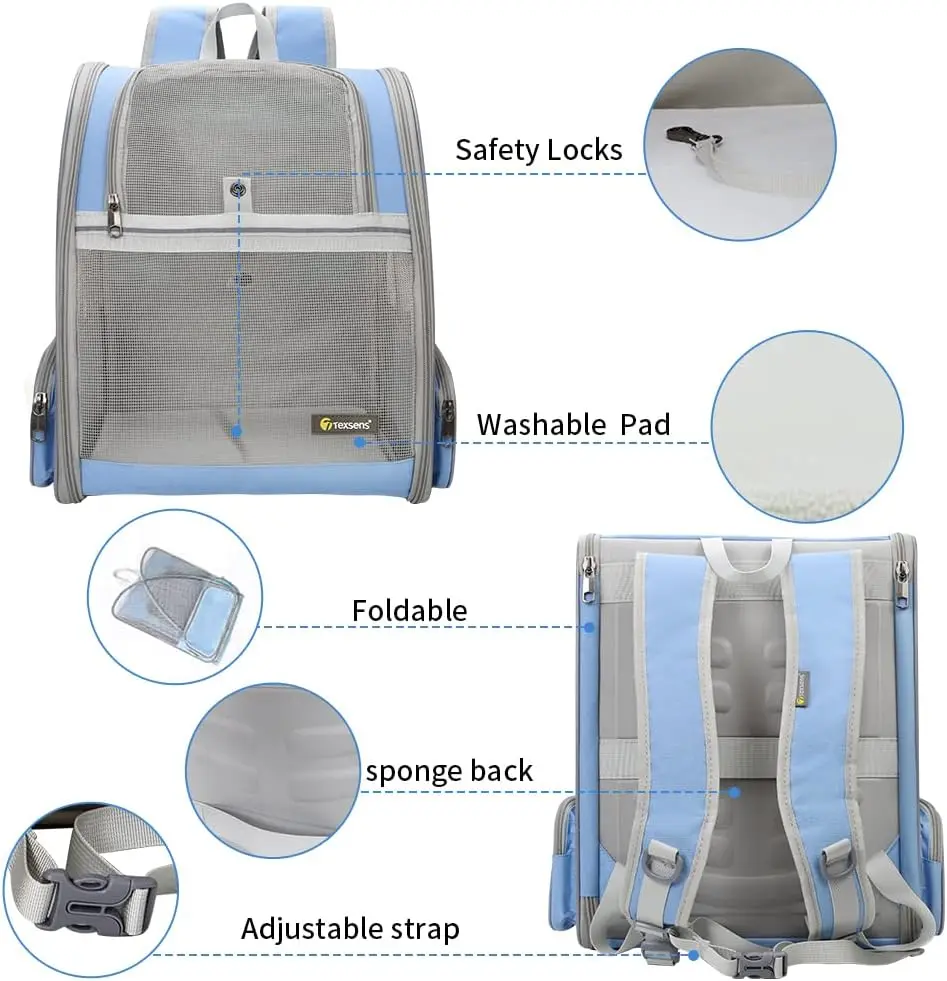 Travel with your pet in comfort and style with this breathable pet carrier backpack. Designed with large mesh panels for airflow and visibility, this carrier helps keep your cat or small dog comfortable while on the go. The backpack design makes it easy to carry during walks, trips, vet visits, hiking, or everyday travel, while the zippered compartments give you extra space for treats, toys, or pet essentials.