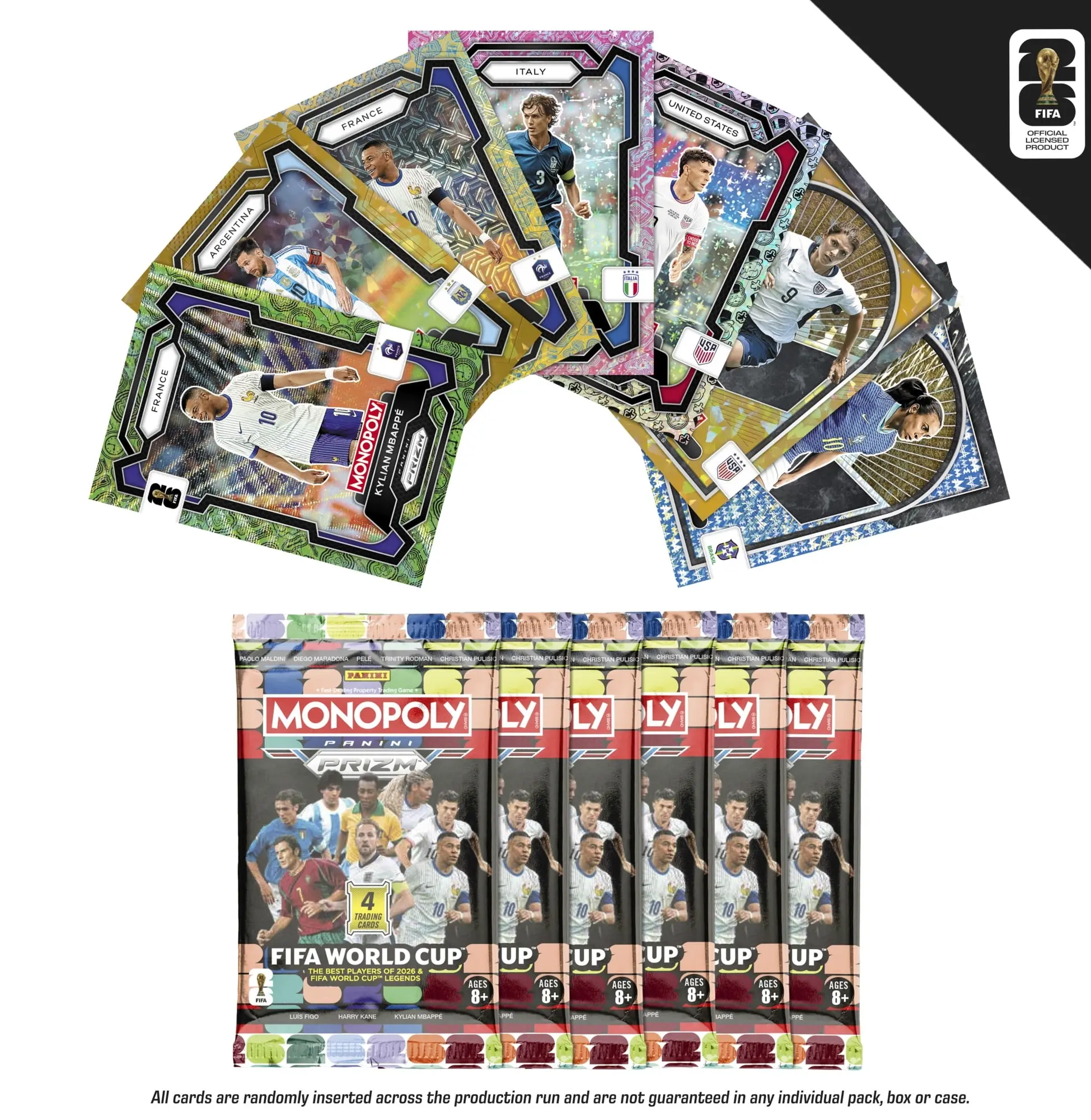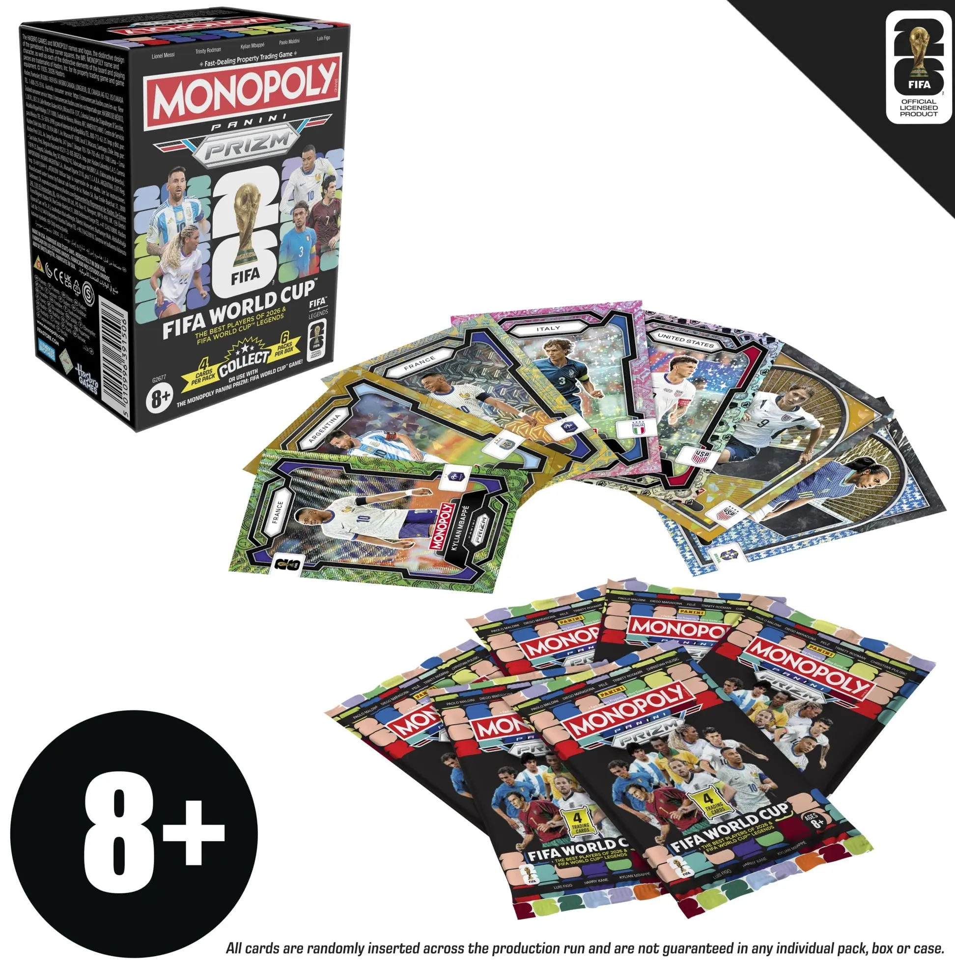 Edition year2026EditionFIFA World CupCount1CollectionMonopoly Panini PrizmBrandMonopolyAthleteLionel Messi, Kylian Mbapp, Mia HammSports leagueFIFASporting eventFIFA World CupManufacturerHasbro Inc.MaterialPaper