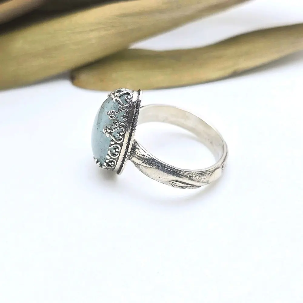 ·Set in sterling silver, it features an inverted heart gallery wire.