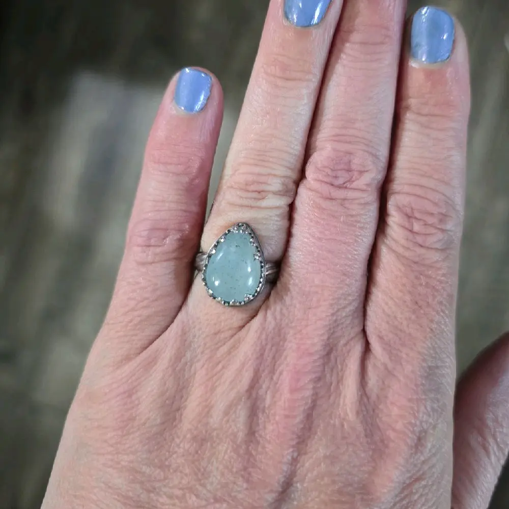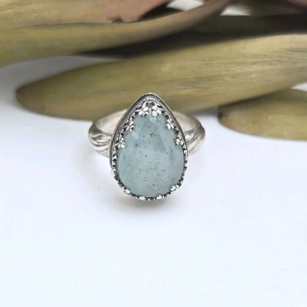 ·Teardrop cut, pale blue Aquamarine is the centerpiece.