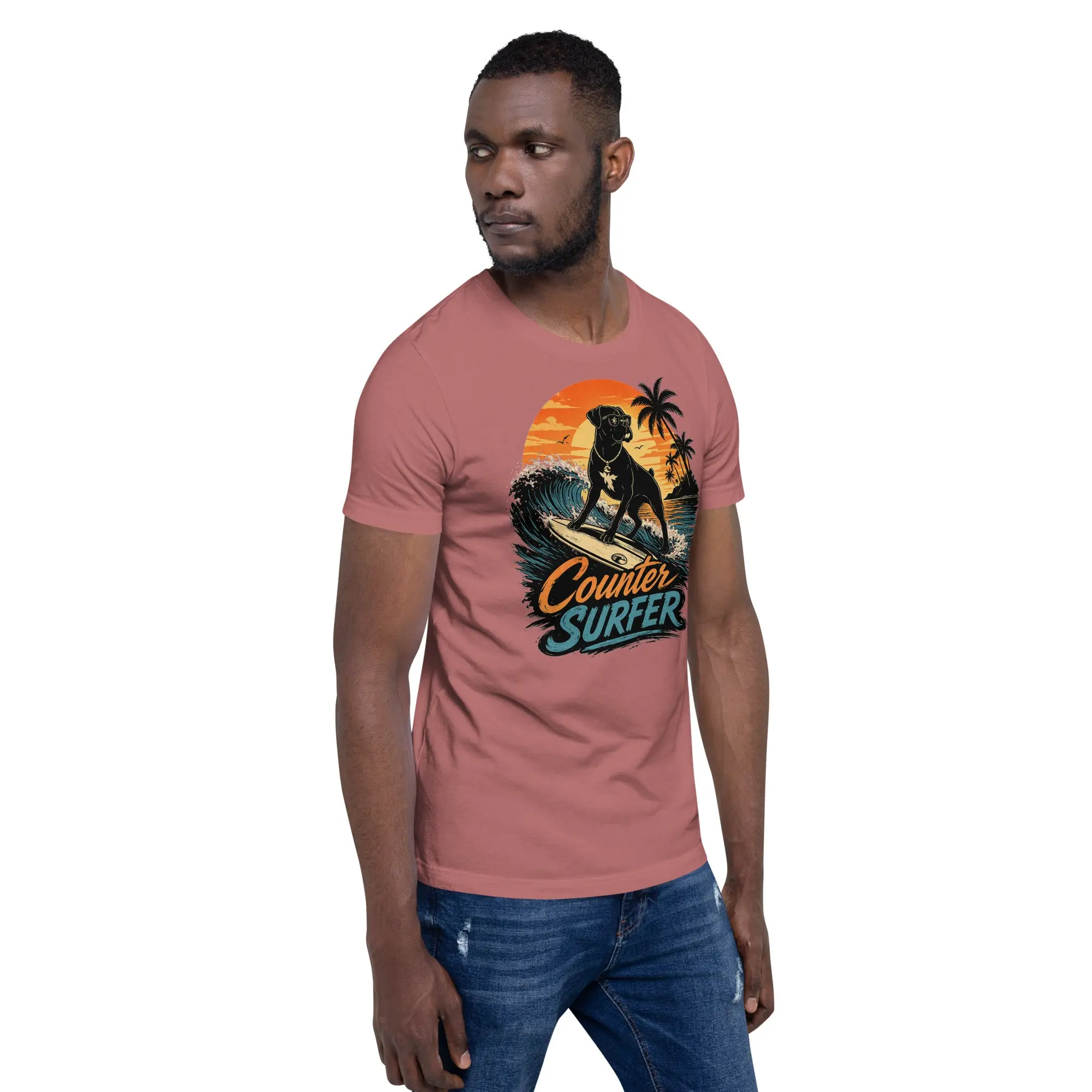 Featuring a bold Counter Surfer boxer design, this tee blends laid-back beach vibes with a playful nod to every boxer dog’s favorite habit. Perfect for dog lovers, surf enthusiasts, and anyone who appreciates a clean, standout graphic.