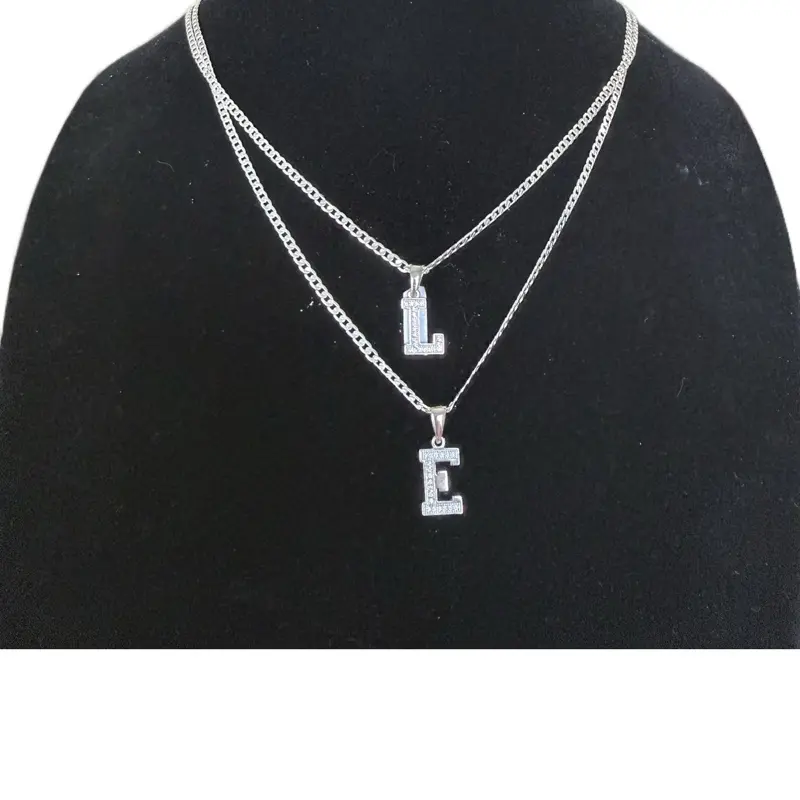 Cadenas estilo baby cubanas de plata 925 italianas con iniciales 20” de largo.
