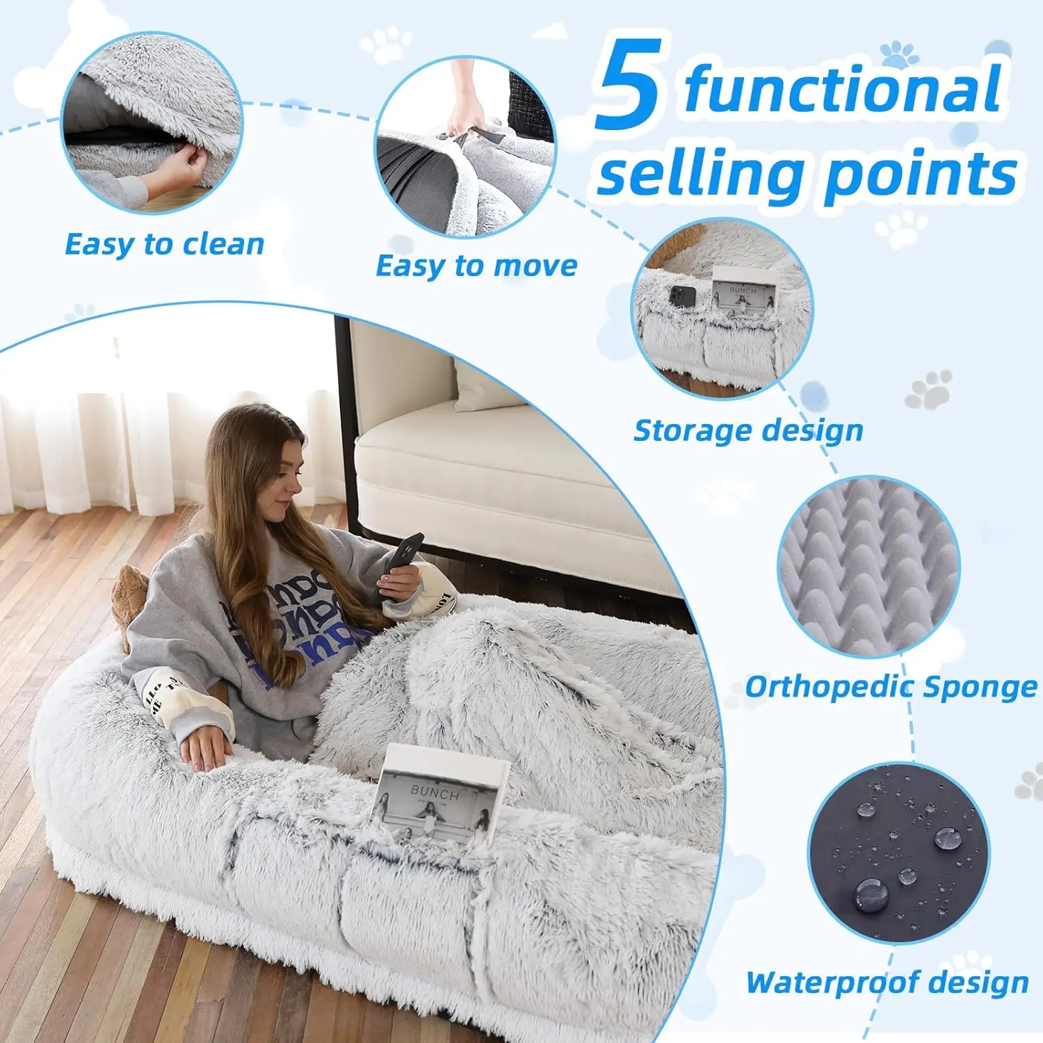 • ULTRA-SOFT WASHABLE FAUX FUR: Wrap yourself in luxury with our premium, skin-friendly faux fur cover. The removable, machine-washable outer shell ensures your napping sanctuary stays fresh and hygienic, even if your dog leaves muddy paw prints behind.