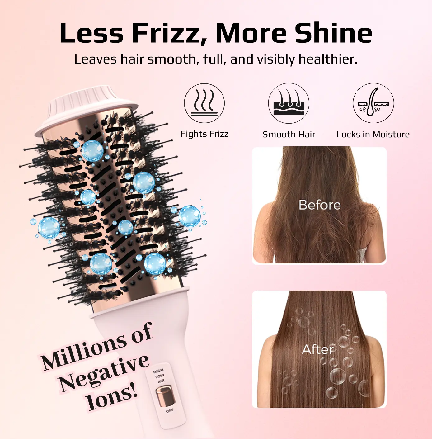 Negative ion technology helps reduce static and frizz while enhancing natural shine. Your hair looks softer, smoother, and more manageable after every use.