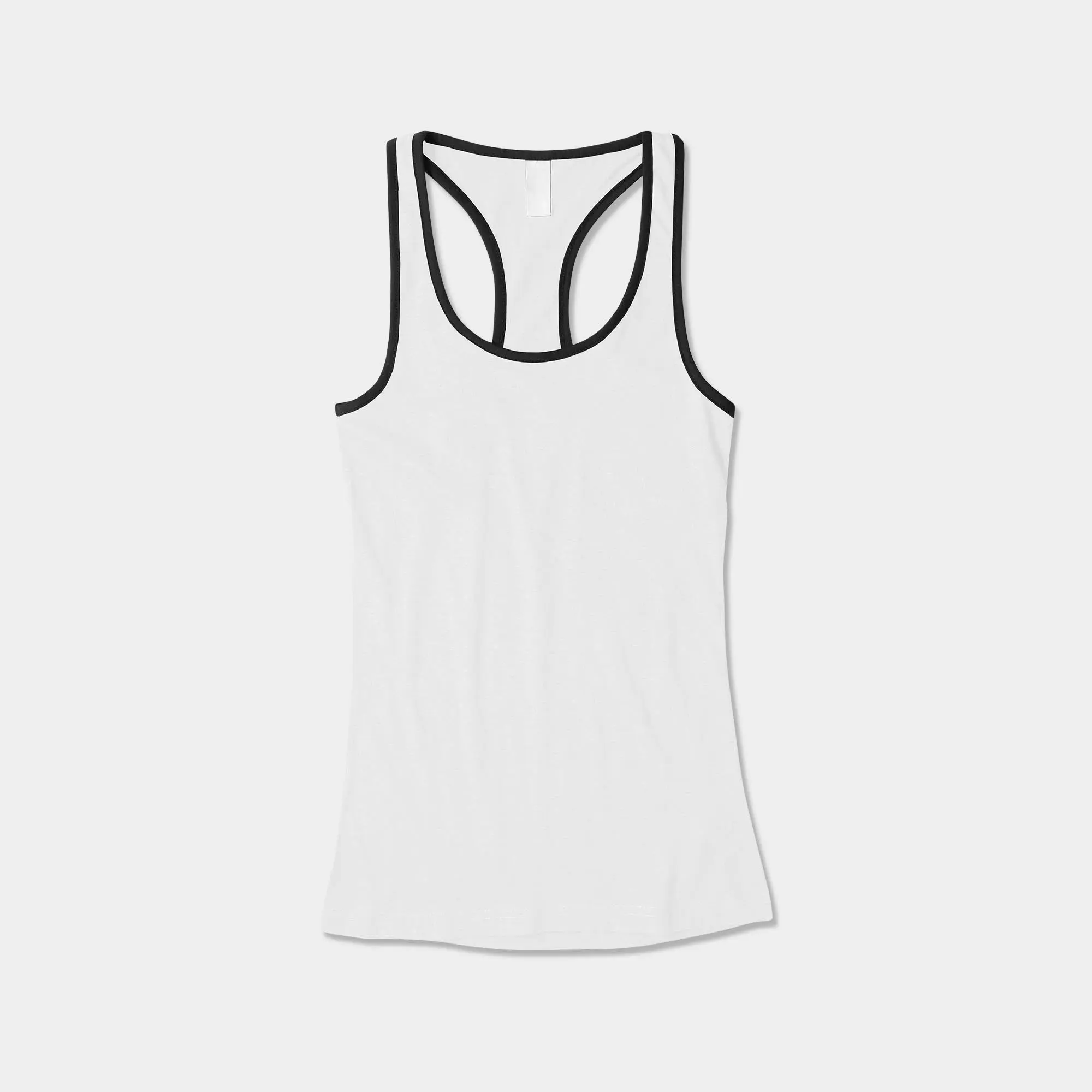 A signature look that is must have in all wardrobes. Get comfortable and enjoy the beach at summer, or do pilates or yoga with a classic tank top. Womens two-tone premium racerback tank tops are designed with your comfort and fashion in mind. Built with 100% ringpsun cotton and premium polyester for the best quality. Lightweight, durable, and moisture wicking. Form fitting and preshrunk for lasting wear without shrinkage. Perfect for a simple casual look, wearing at home, and inner wear. 100% customizable, add your own iron-on graphics or designs.