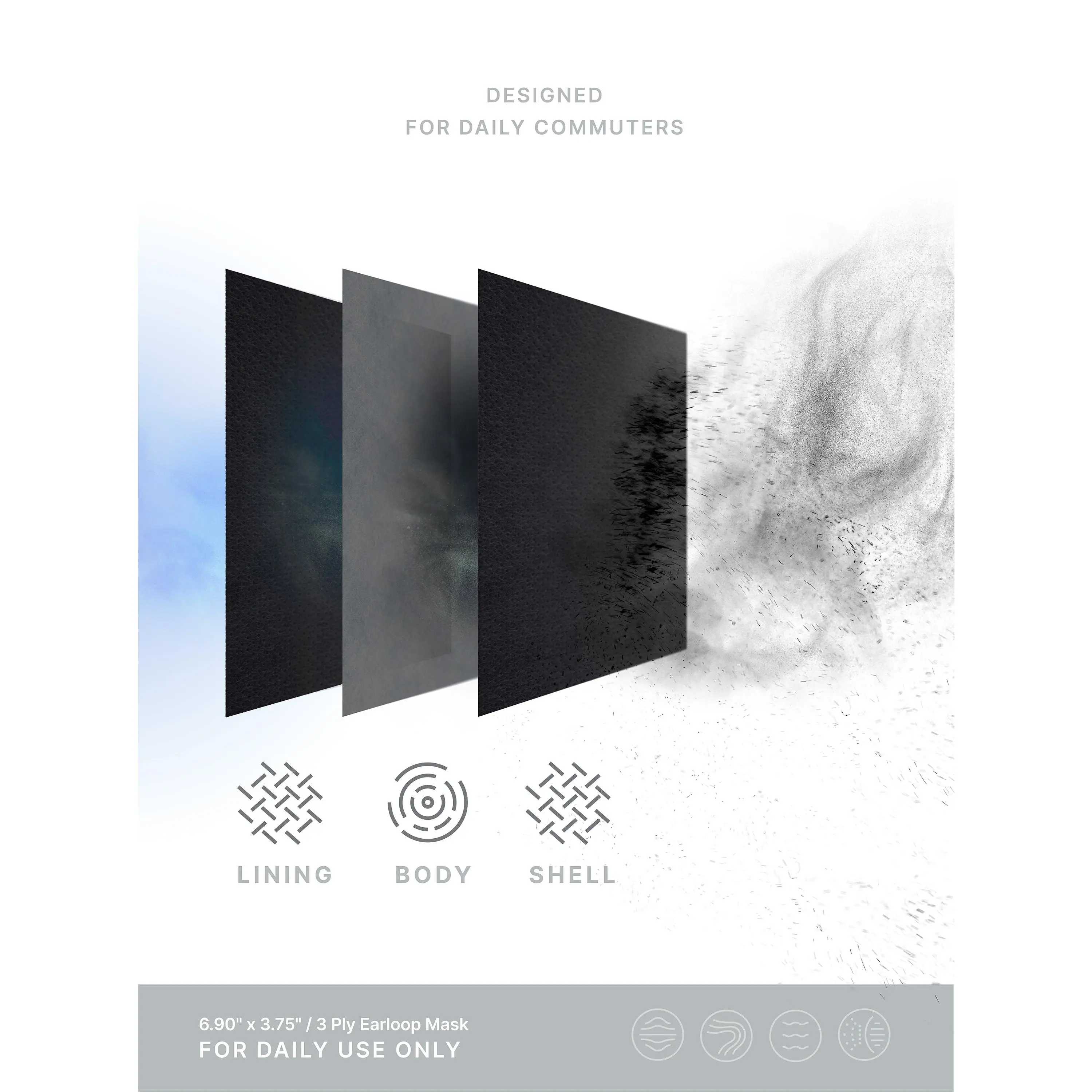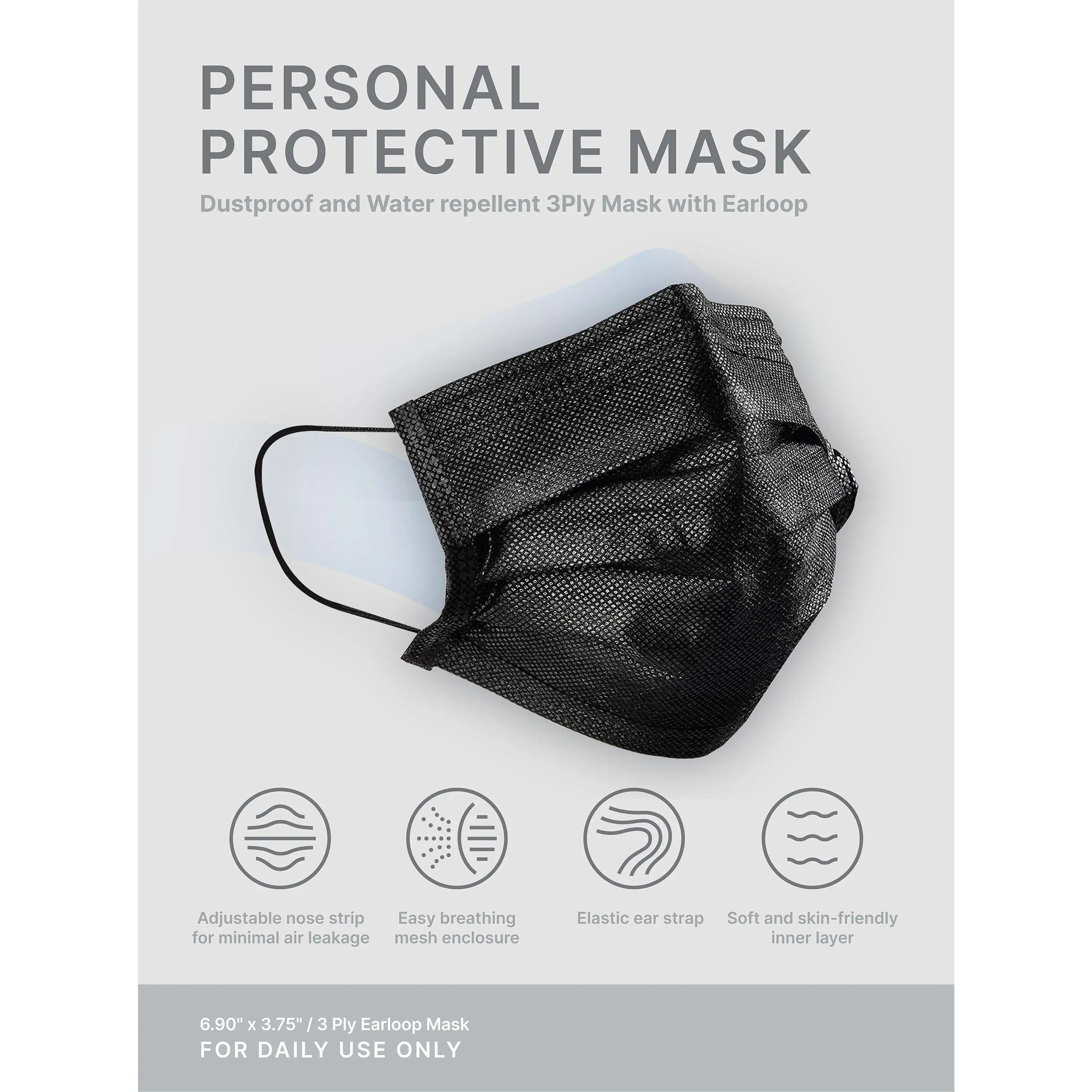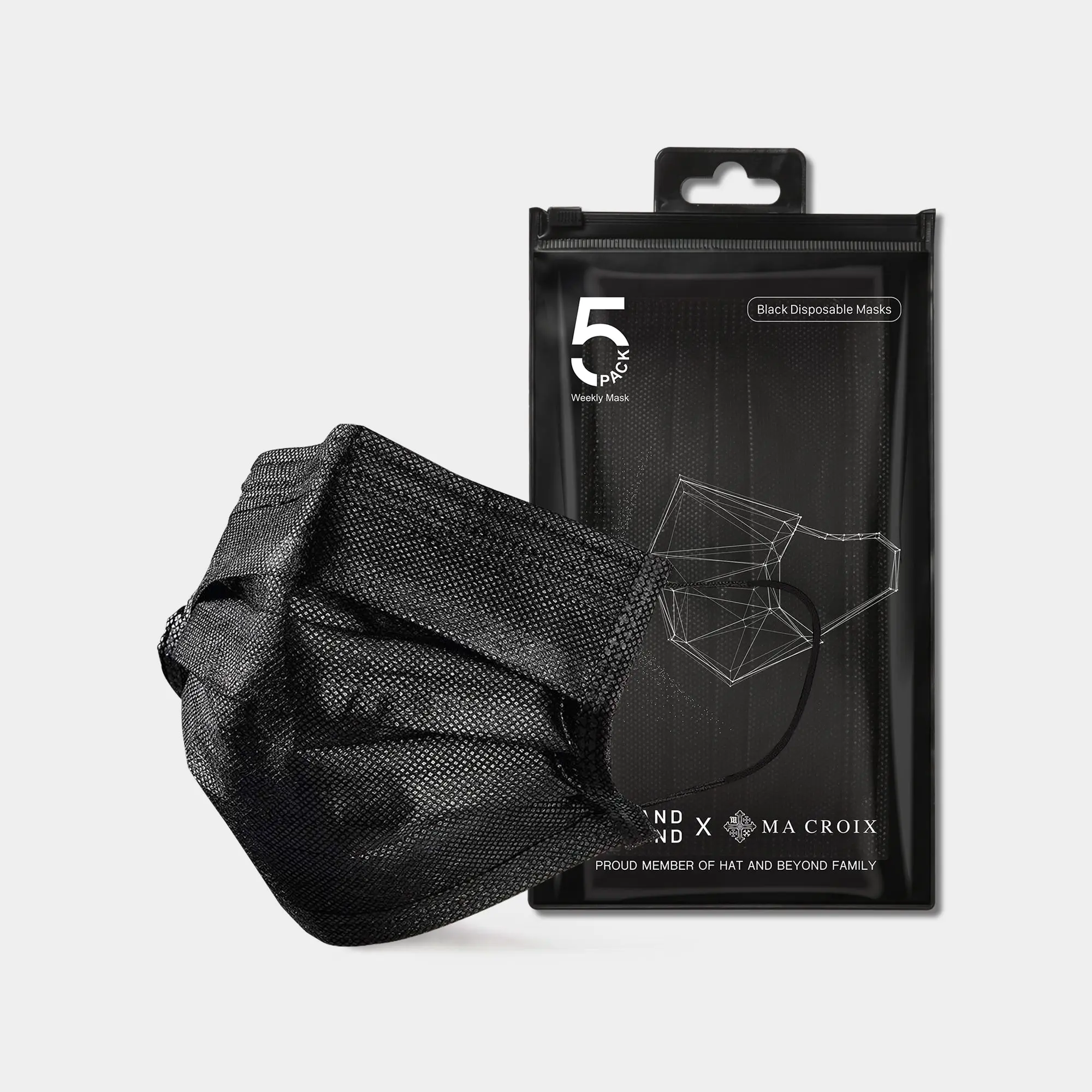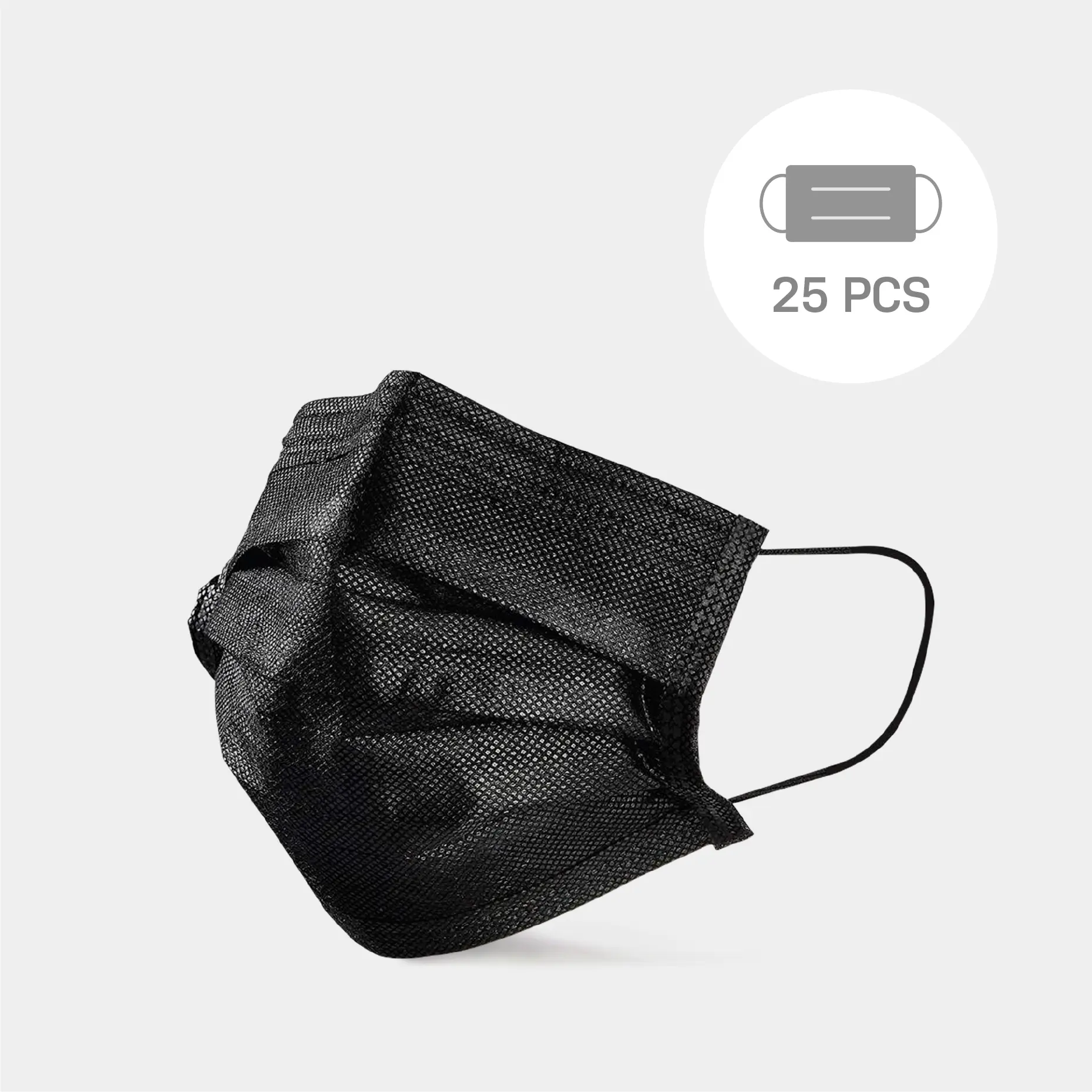 Black disposable face mask built with design in mind. 3 layers: The inner layer with soft materials for maximized comfort for people with sensitive skin and middle layer for additional layer and 3D spacing. Black color for bold fashion.