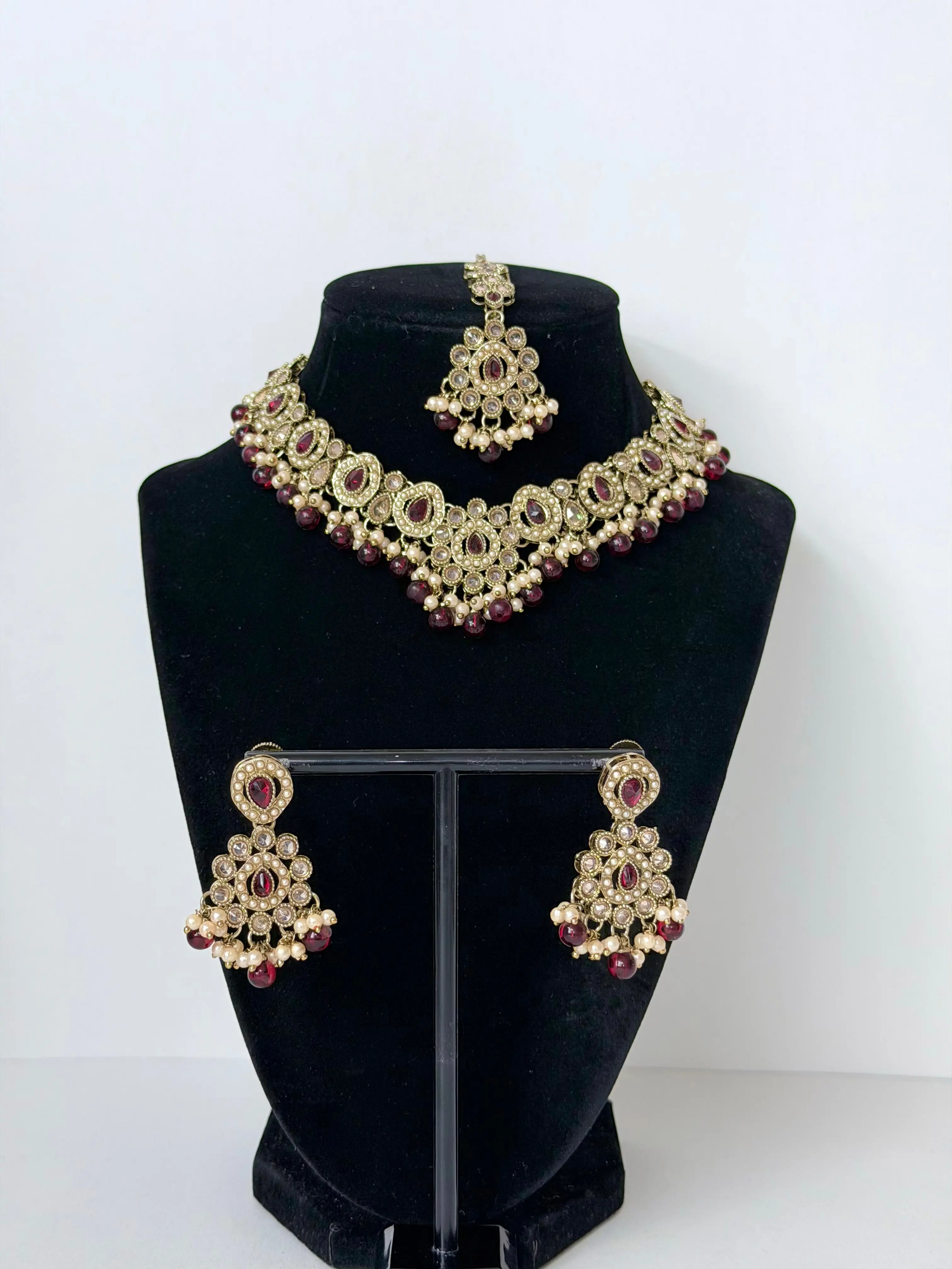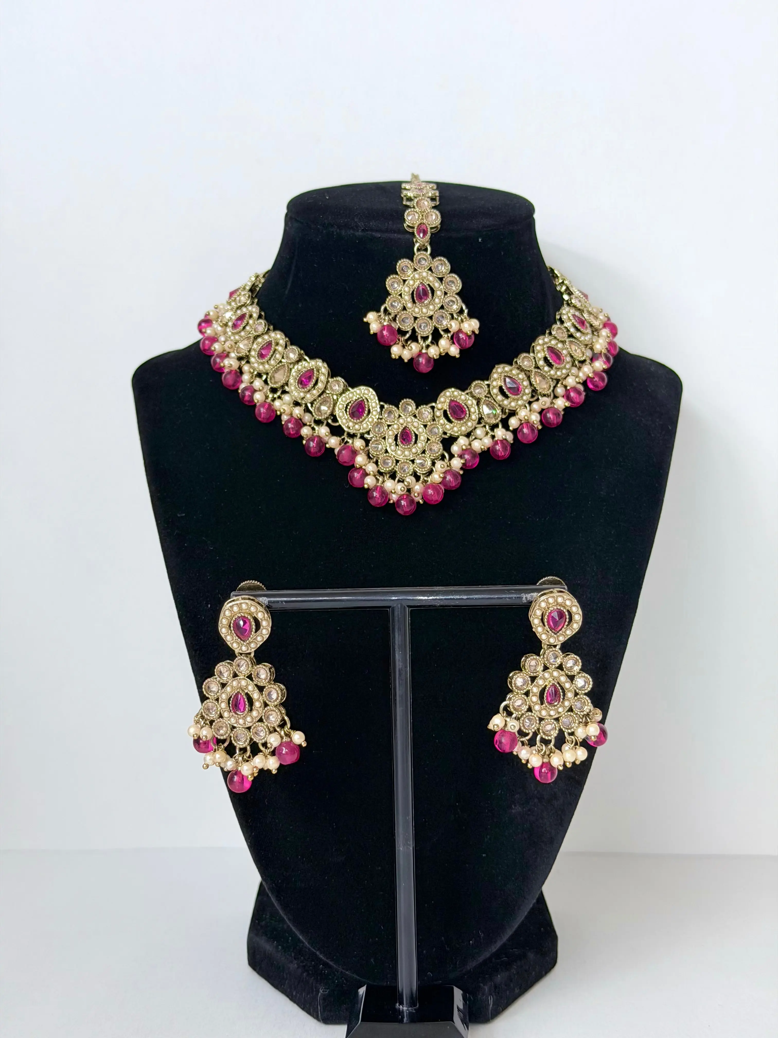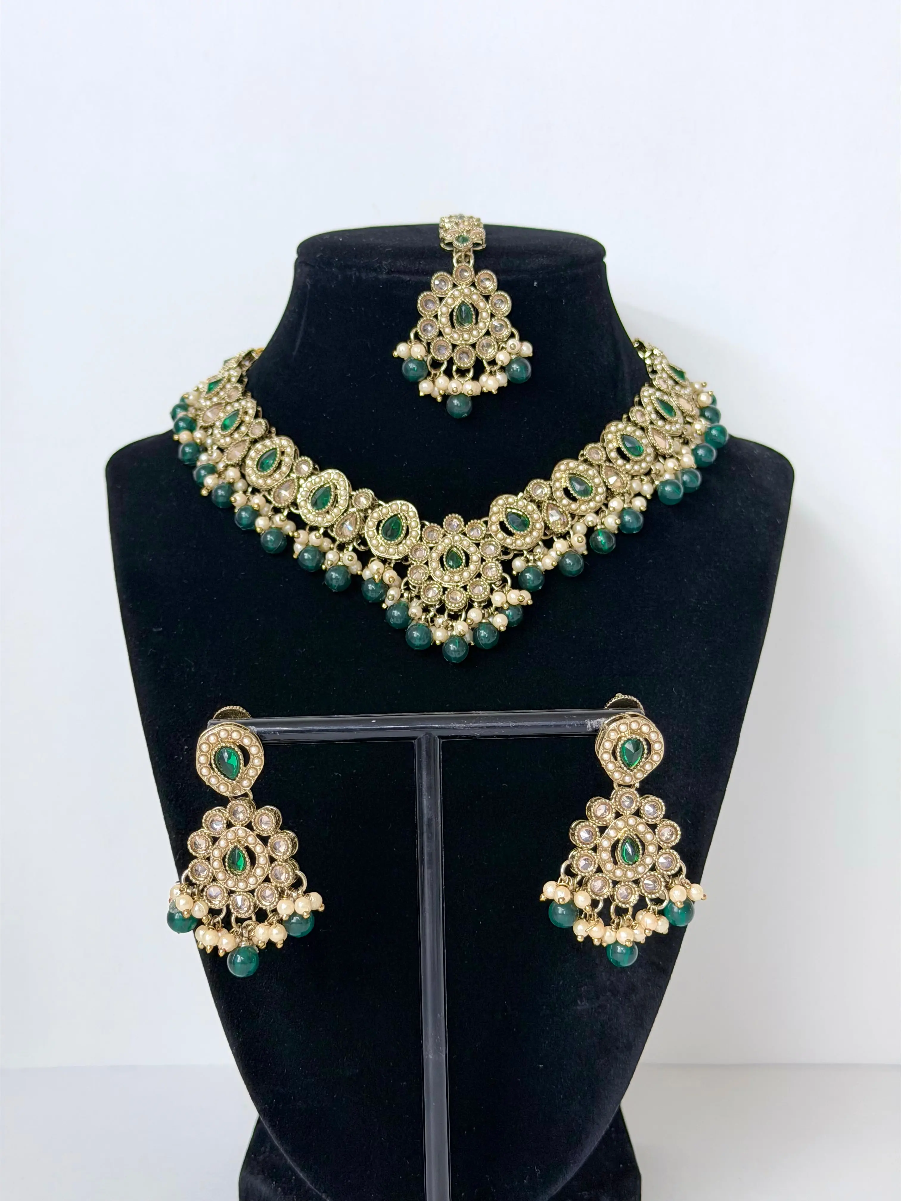 Bollywood Polki Ira Necklace with Earrings and Mangtika