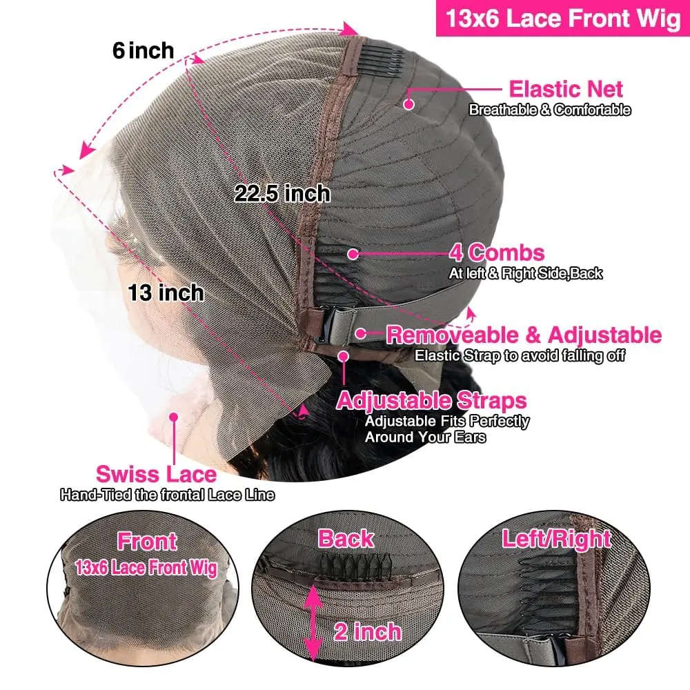 ·【13x6 HD Lace Front Wigs Human Hair Lace Size】: 13x6 Lace Frontal Human Hair Wigs, HD Transparent Swiss Lace, Blends Perfectly into Your Skin, Soft and Breathable, Allowing for a Free Part Style. Can Be Side Part, Middle Part, High Ponytail& Bun, Styled As You Like.