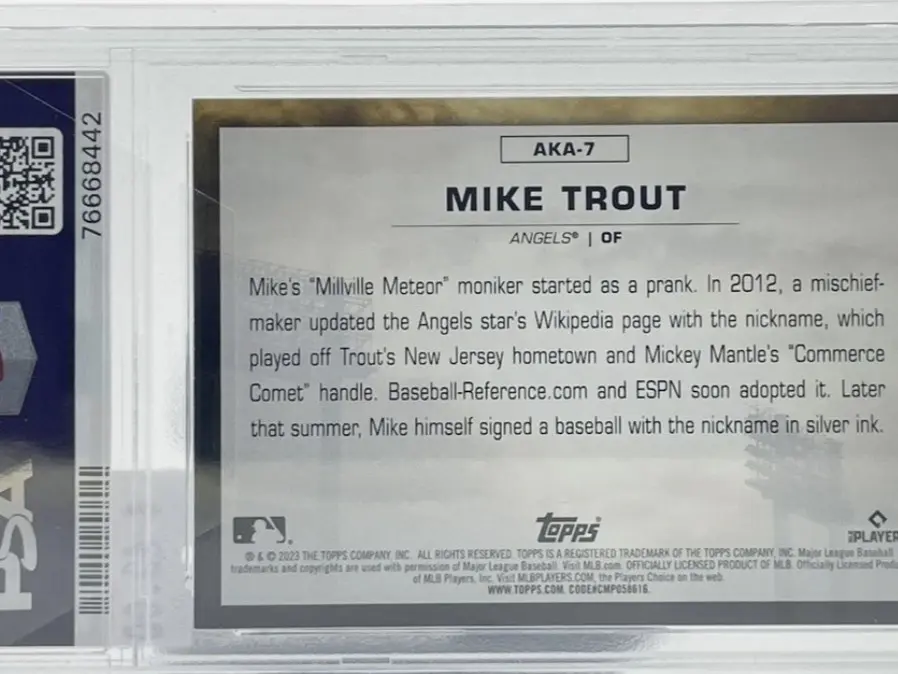 This is a rare Mike Trout baseball card, numbered #AKA-7, professionally graded PSA 8. A highly sought-after collectible for baseball fans and card collectors, this card features excellent condition with strong centering, edges, and surface quality.