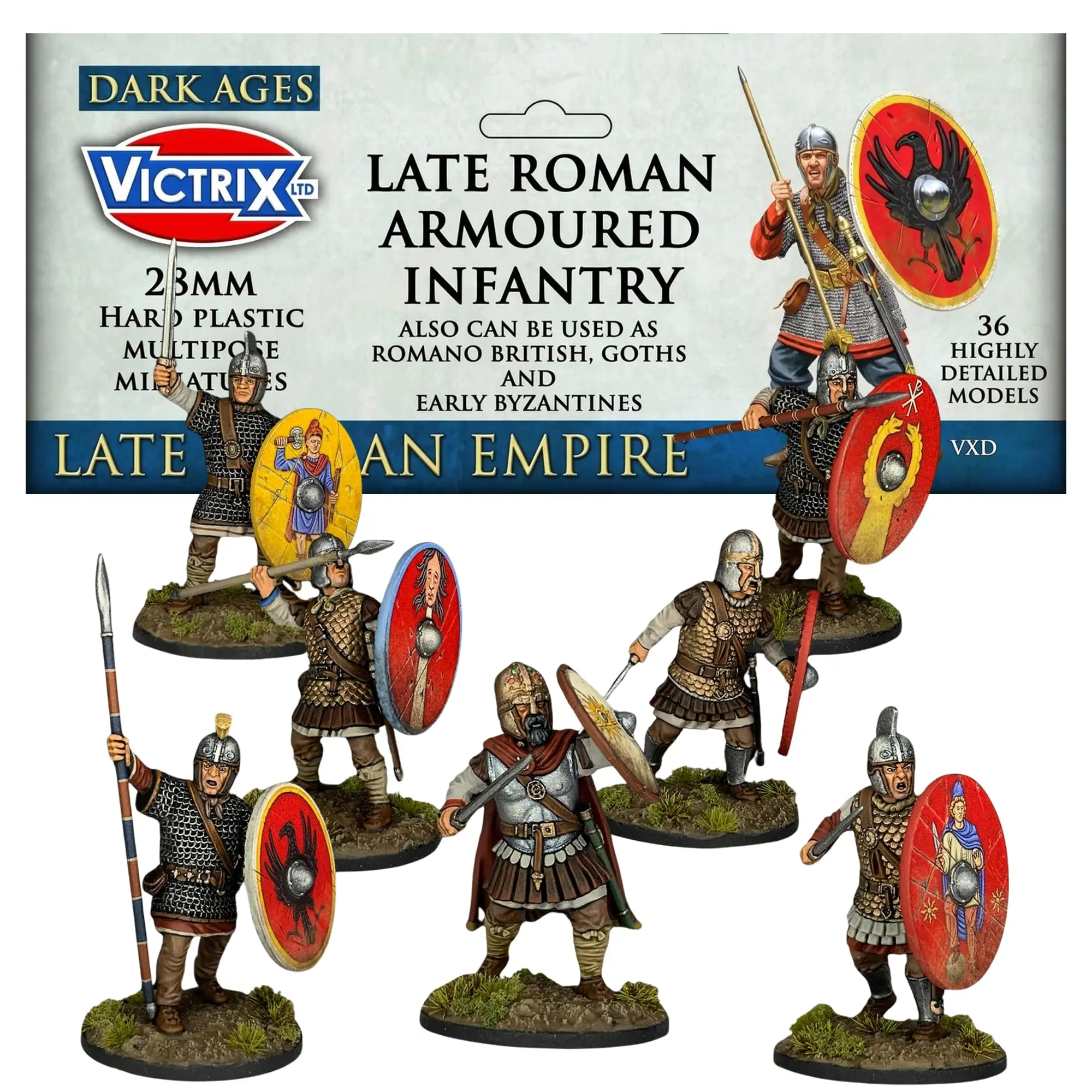 BUILD AN ELITE LATE ROMAN FORCE: Command 36 detailed, armoured warriors as the Roman Empire crumbles! Build Late Romans, Romano-British Arthurians, or Germanic Goths for historical wargames