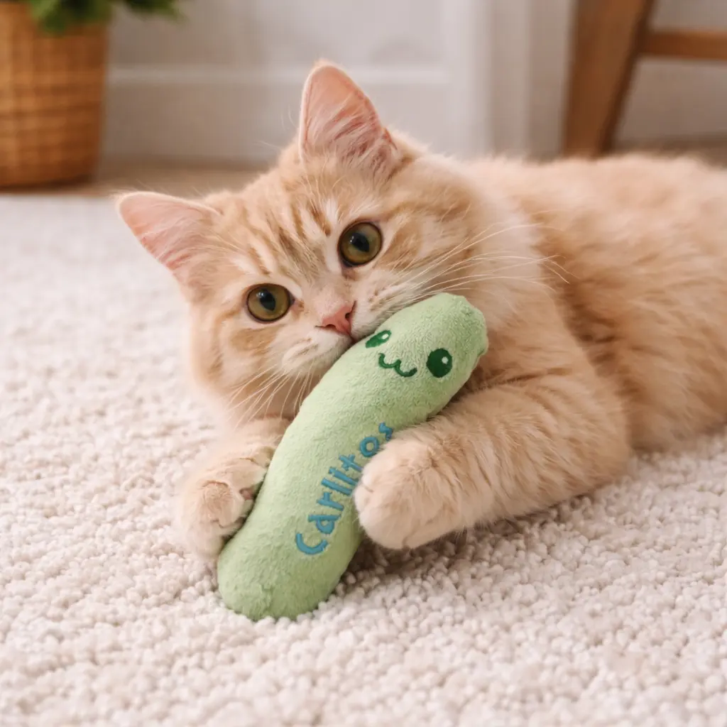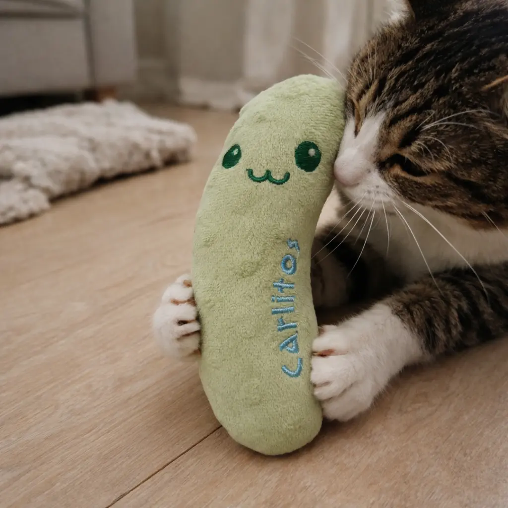 A pickle-shaped toy with your cat’s name on it is exactly the right amount of playful. Handcrafted, soft, and available in sizes for every kind of chomper.
