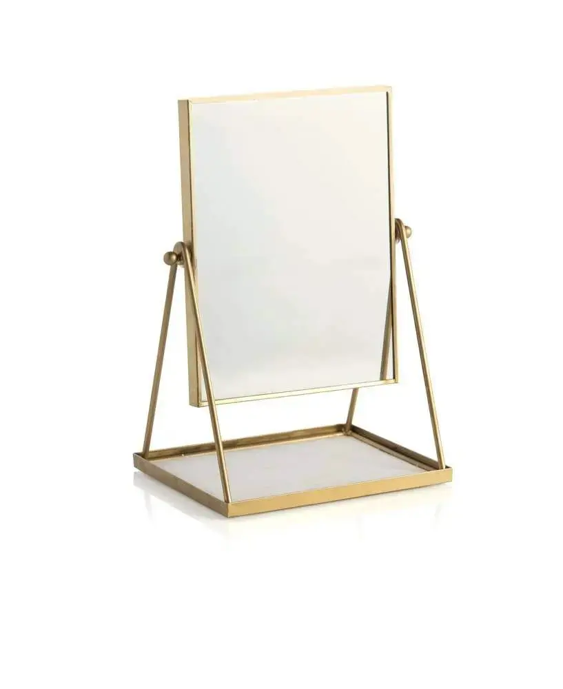 Keep your vanity looking chic with this Metal Vanity Flip Mirror with Tray. The rectangular mirror features an attached tray on the base that provides space to keep small items organized. Whether you keep it on your bathroom counter or bedroom vanity, you'll always have the views you need to fine-tune your look with this mirror.
