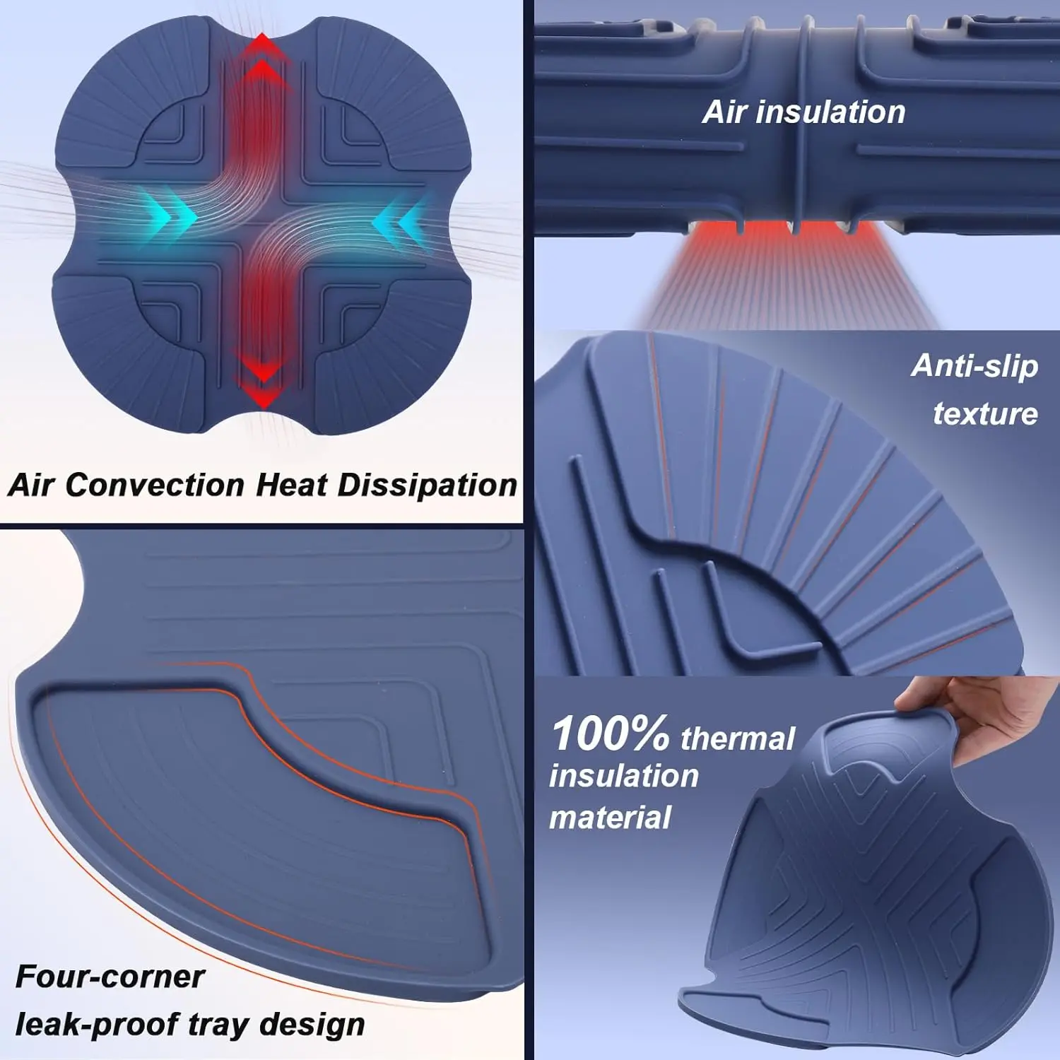 ·Multifunctional design: The trivet’s four corner grooves act as a tray, catching any oil splashes or liquids that may form as the air fryer cools down. The non-slip design ensures the silicone pad stays securely in place on your countertop, preventing it from sliding or falling.