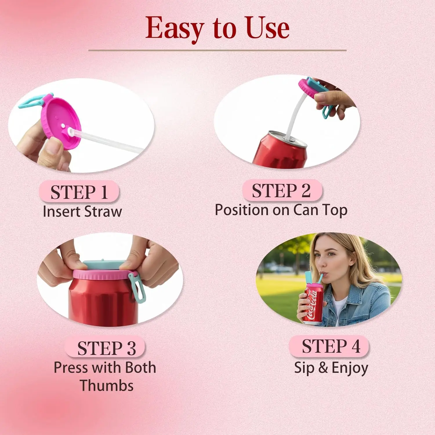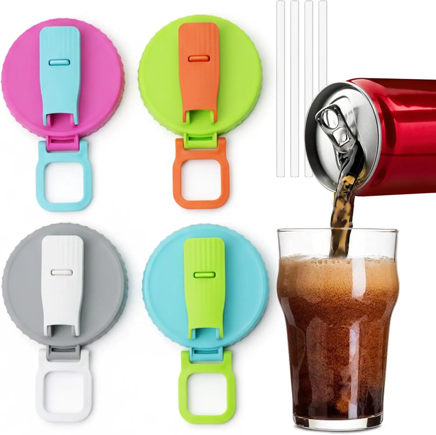 ·Soda Can Lids with Silicone Straw, Reusable Soda Can Covers to Keep Carbonation, Leak-Proof BPA-Free Can Tops for 2.13" Standard Soda, Beer & Energy Drink Cans, 4 Pack