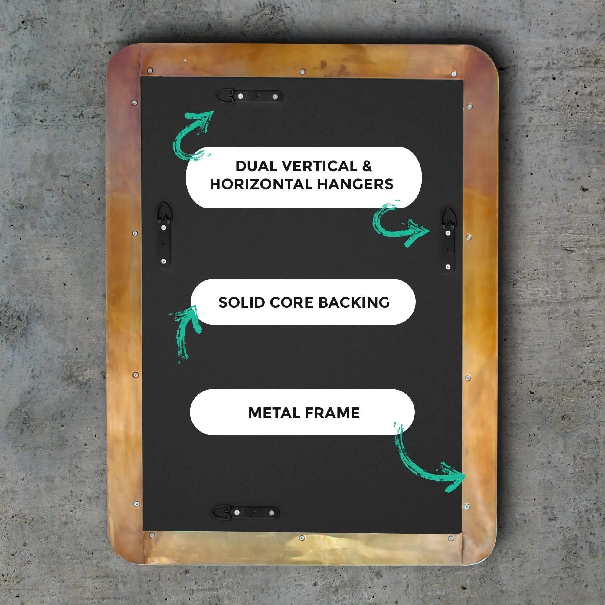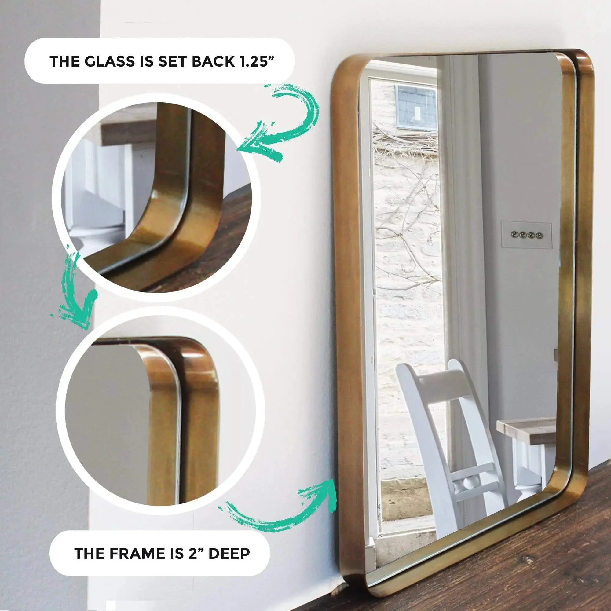 ·The Golden Metal Frame is a hand brushed brass with rounded corners and an infinity design above the mirror.