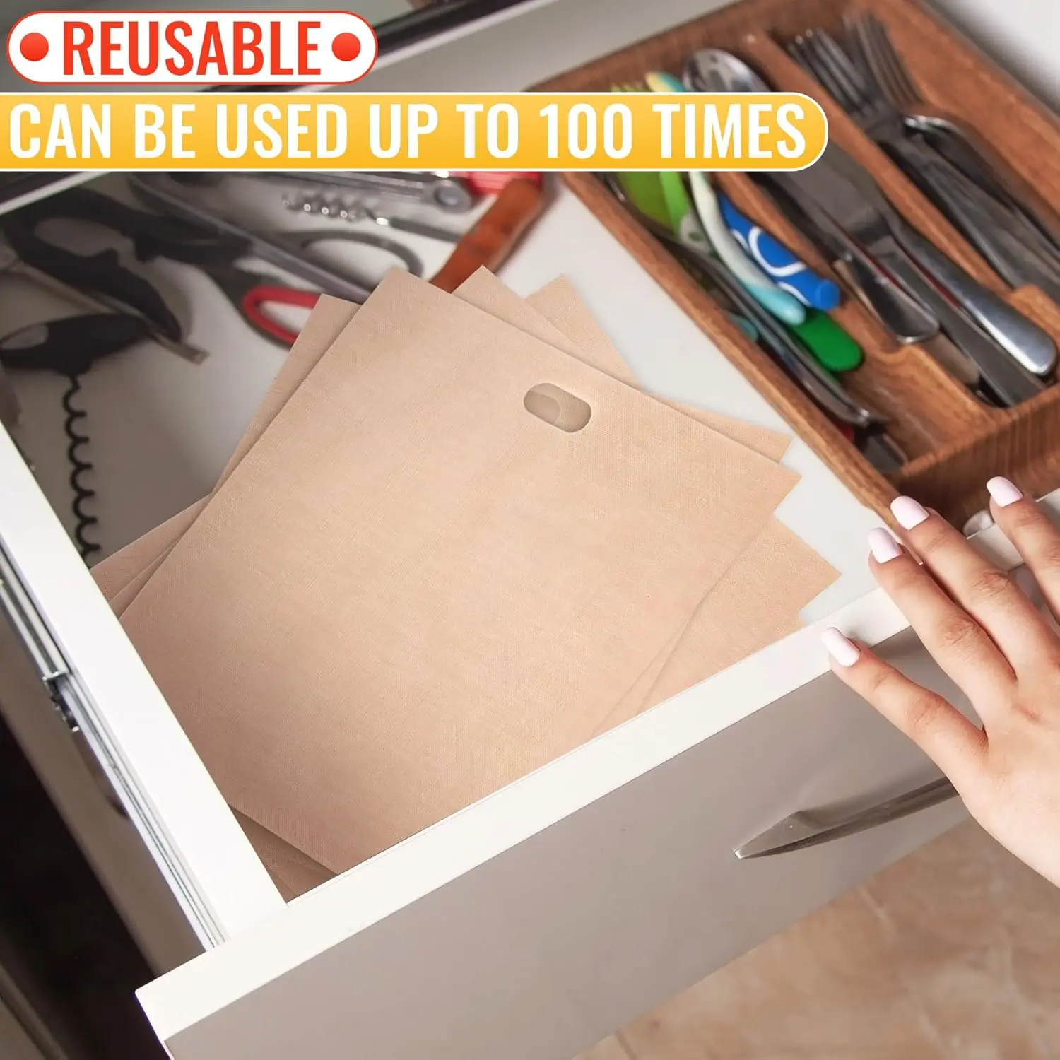 ·Easy Cleanup: Rinse the inside of the grilled cheese sandwich toaster bags under warm water or place them in the dishwasher to clean the toaster wrap for quick and easy cleanup. Each grill cheese toaster bag can be reused up to 50 times