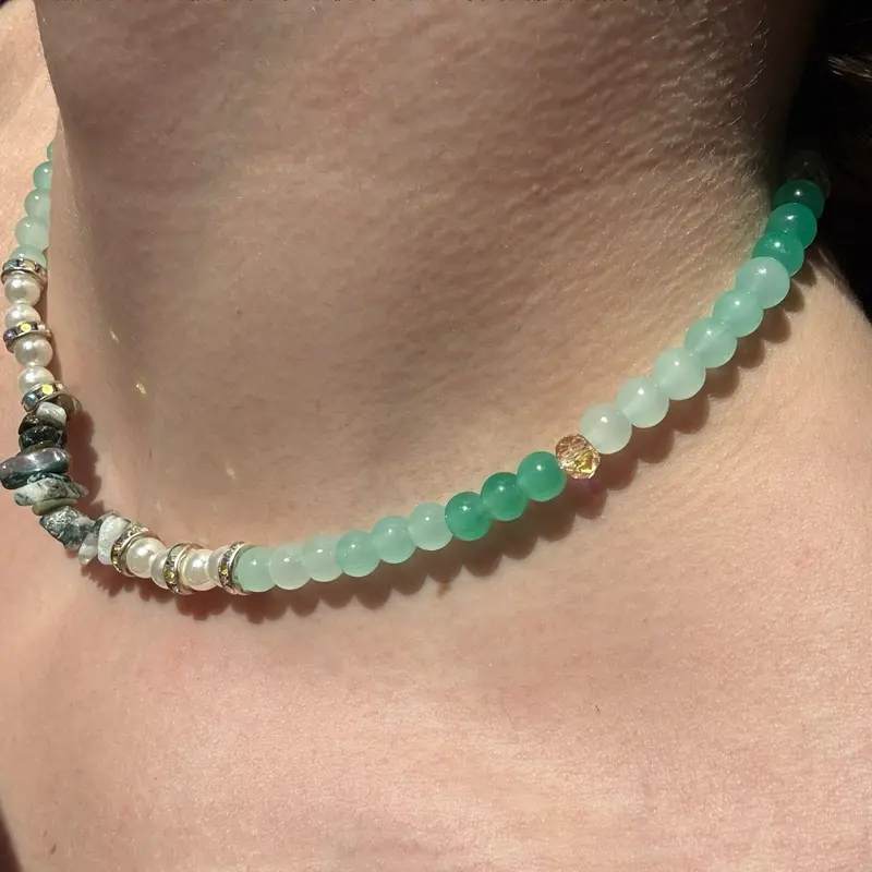CHRYSOPRASE ELASTIC GEMSTONE NECKLACE❣️