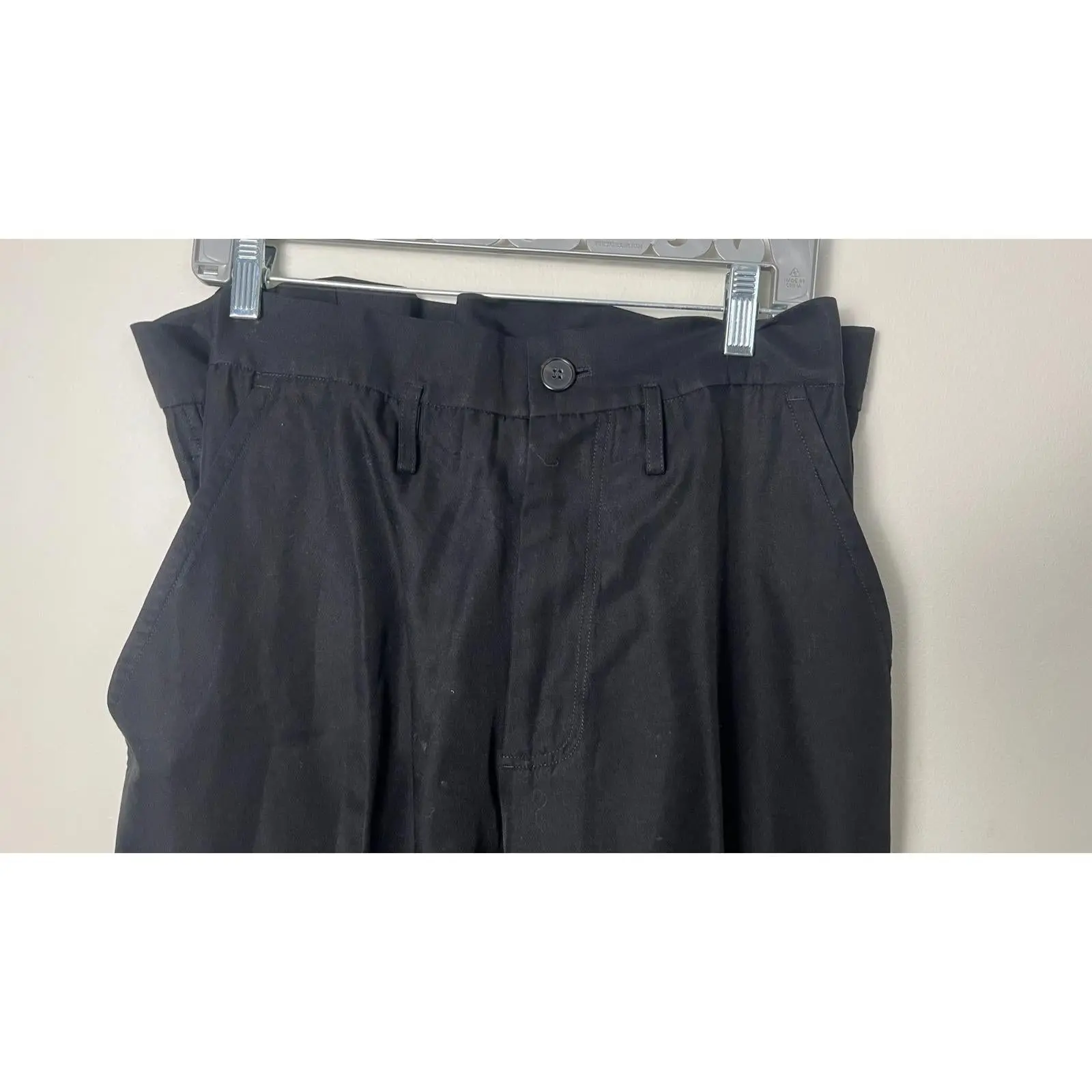 MARGIELA WHITE LABEL MAIN LINE WIDE LEG PAPER BAG WAIST PANTS IN A MARKED SIZE 36. THE PANTS WILL FIT A 27 INCH WAIST. THE PANTS FEATURE A LIGHT COTTON SILK BLEND FABRIC, WIDE LEG, 14 INCH FRONT RISE- SUPER HIGH WAISTED, AND A 12 INCH OPENING.