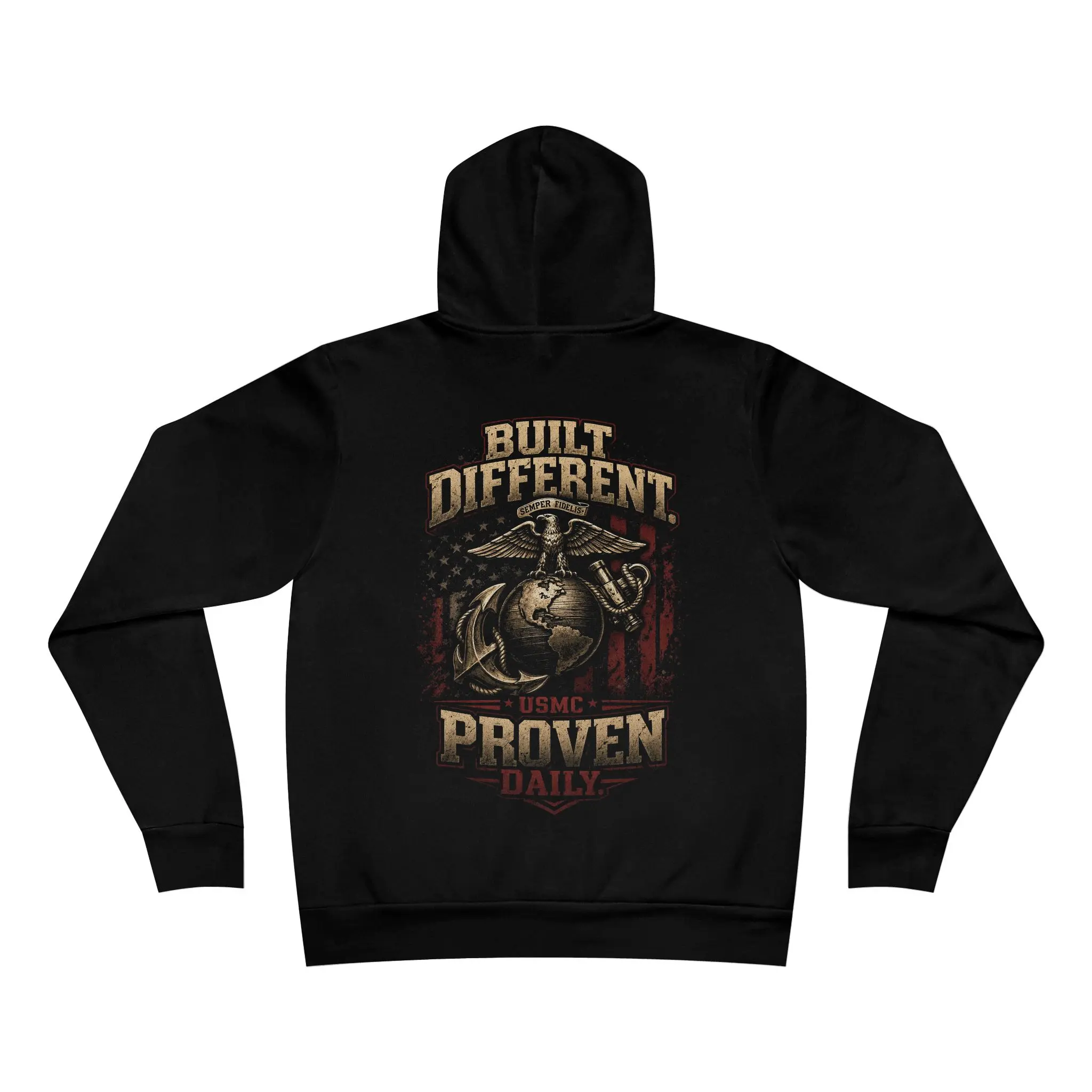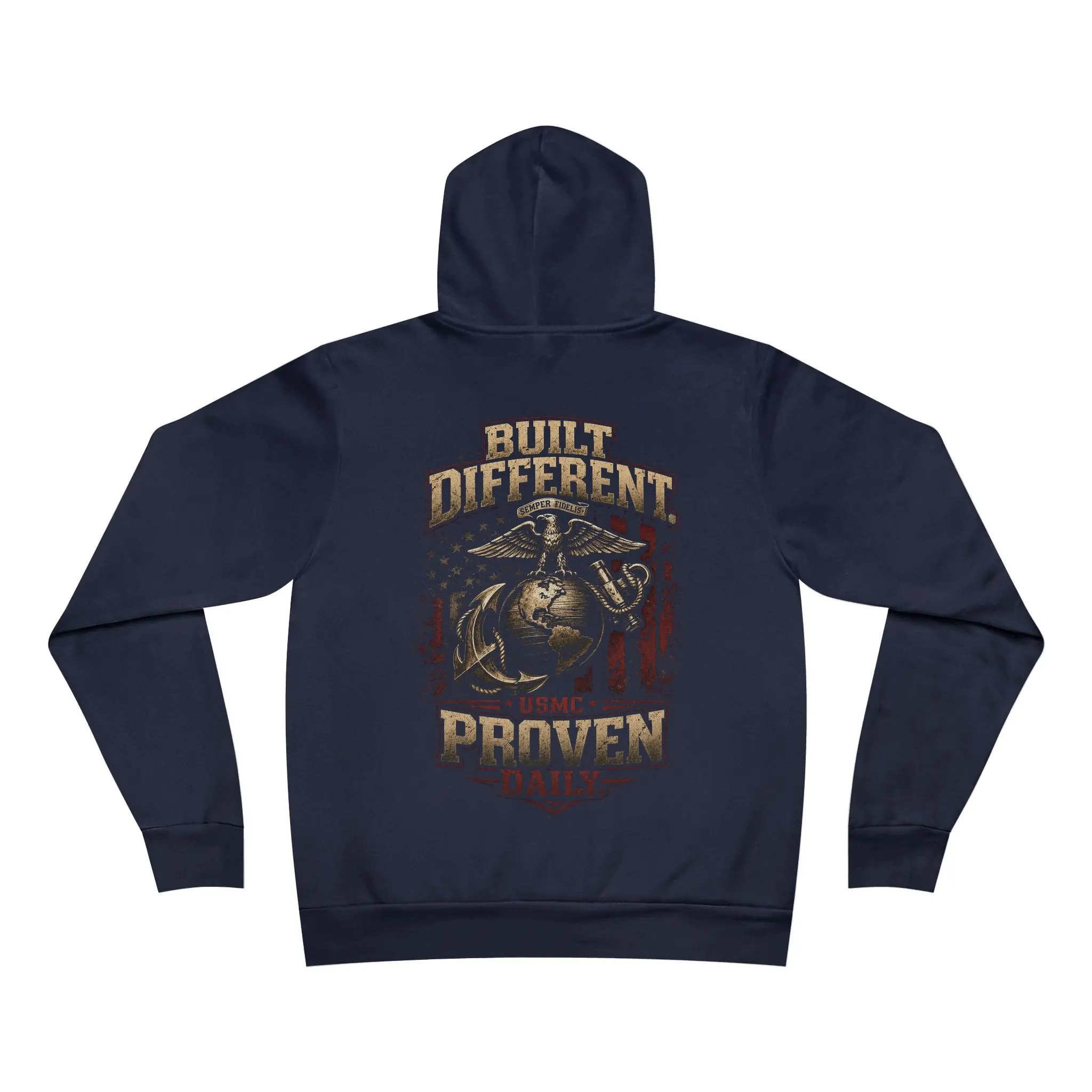 Featuring the iconic Eagle, Globe, and Anchor with a distressed American flag backdrop, this design stands for resilience, loyalty, and the kind of work ethic that doesn’t need validation.