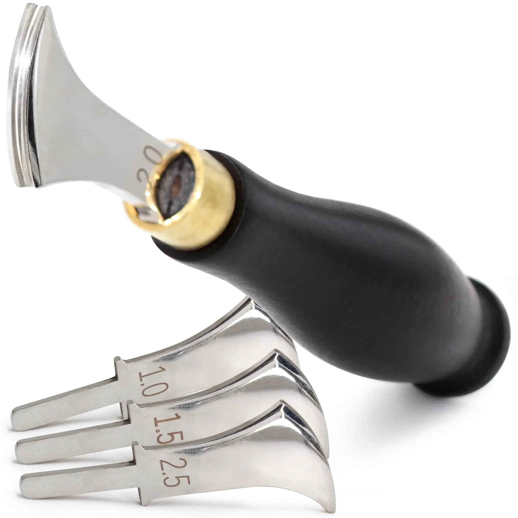 The Edge creaser allows for consistent application of edge lines at fixed widths on leather items. They can be