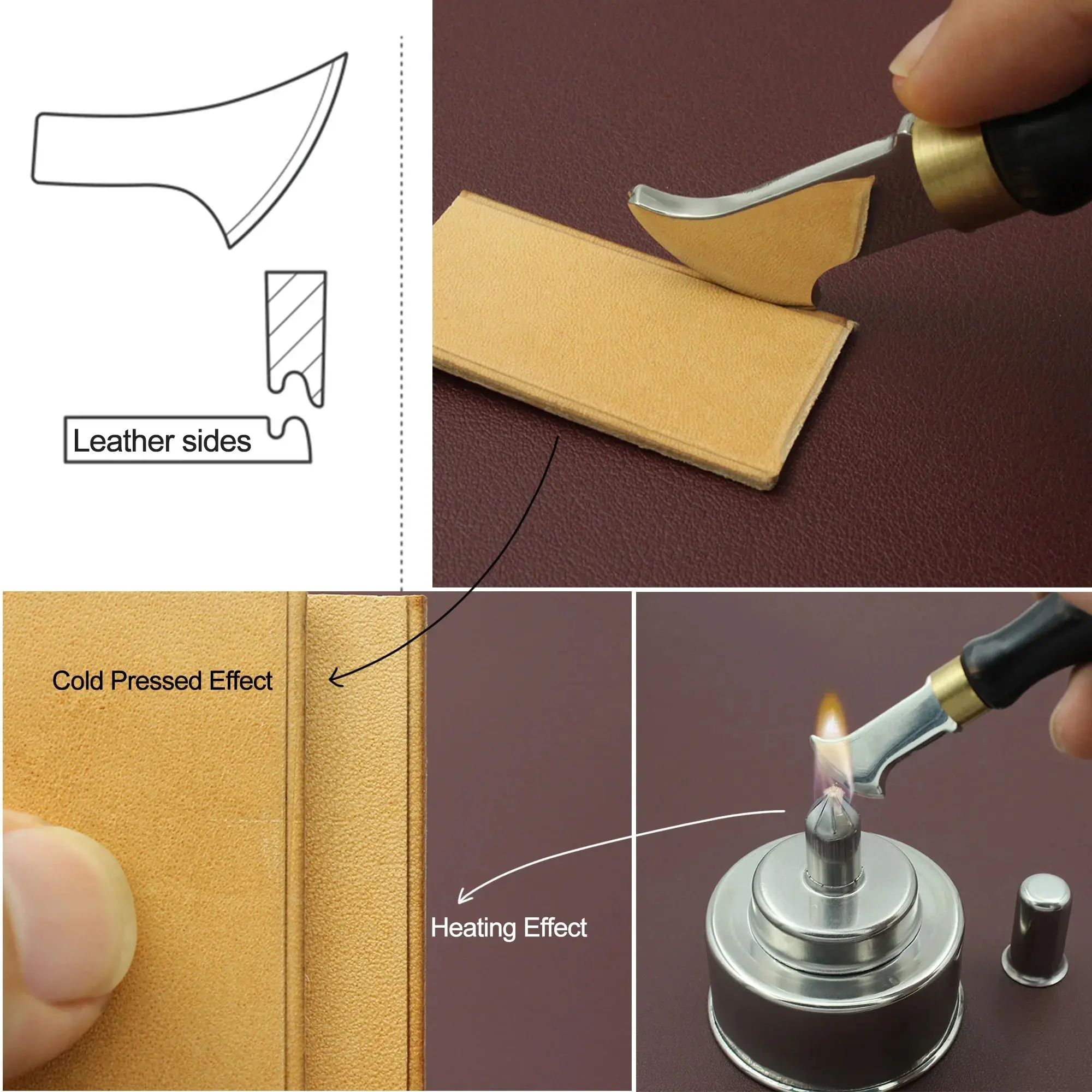 Leather edge creaser tool, mainly used for leather crimping, by applying pressure on the leather surface to pull out parallel decorative lines. Heat the edge of the tool and touch the leather surface, the effect of the leather edge will be better.
