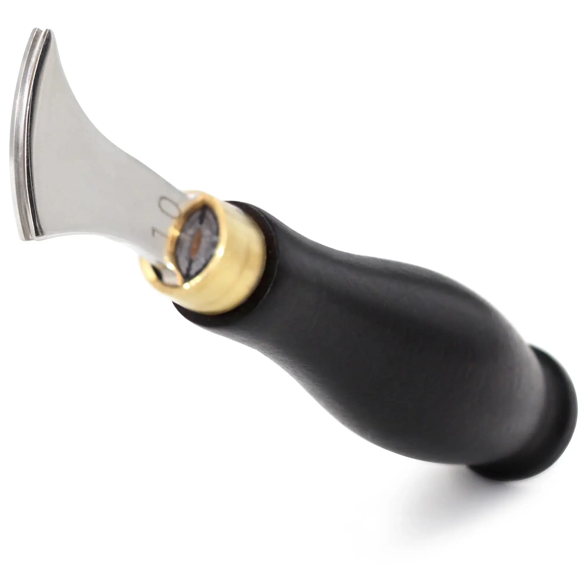 Wood Handle + stainless steel knife head. Overall length: 6.1 inch/15.5cm. The leather crimping machine adopts a curved design, which perfectly solves the leather crimping problem.