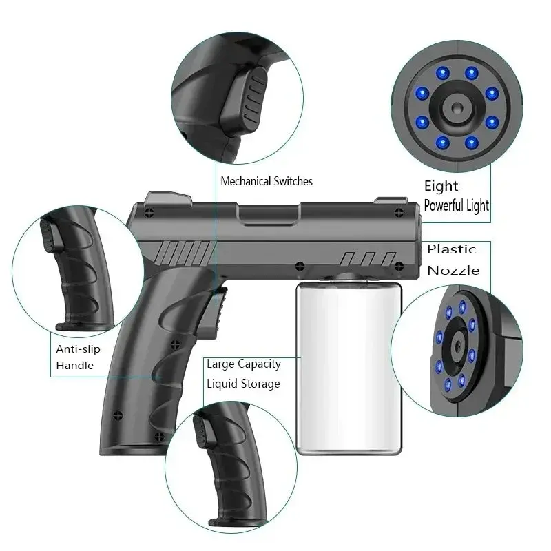 Barber Sprayer Bottle 280ML Steam Spray Sprayer Bottle Handheld USB Nano Blue Light Electric Household Spray Disinfection Gun