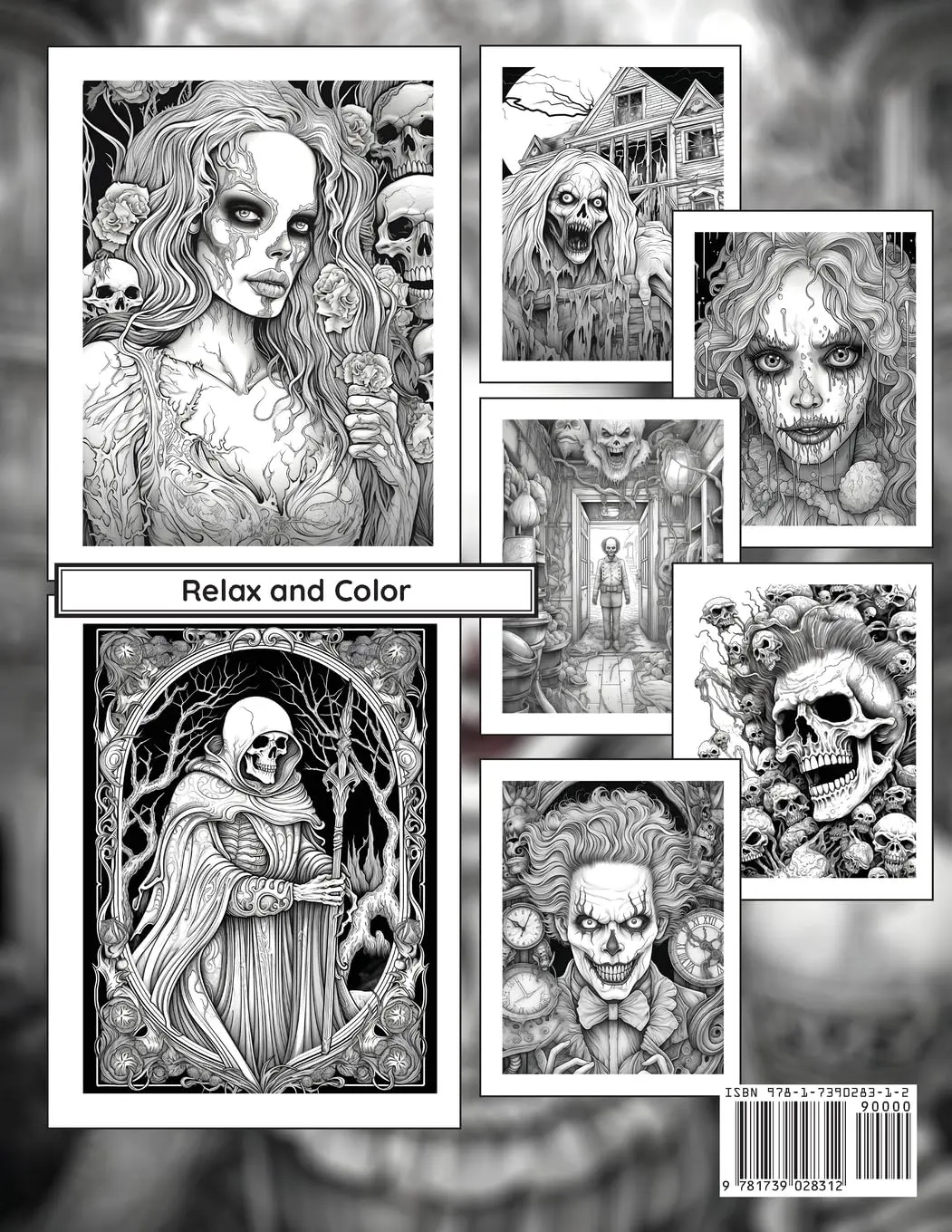 Immerse yourself in a chilling world of horror with 50 unsettling coloring pages in our Horror Coloring Book for Adults - A Dark & Scary Halloween Nightmare.
