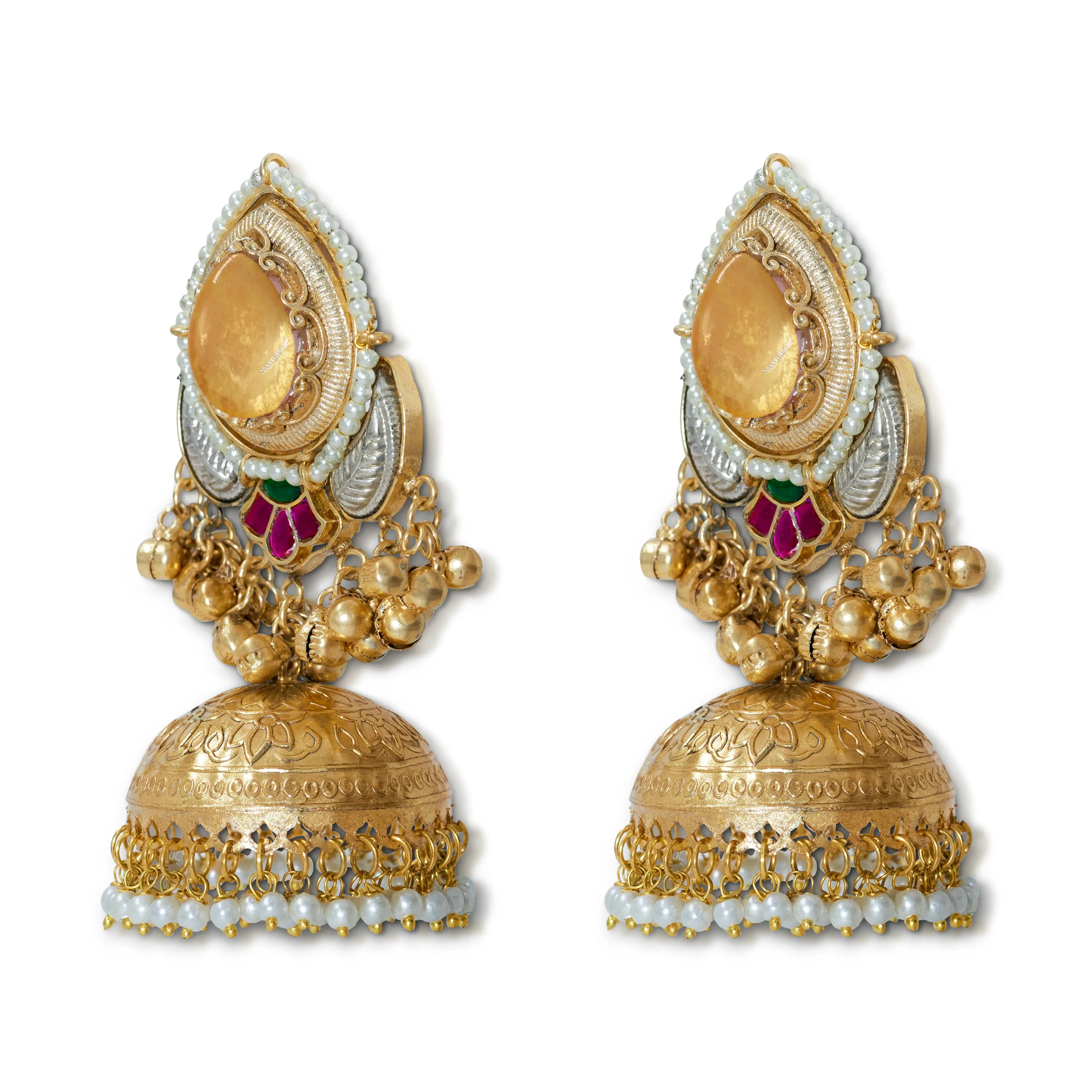 ·Classic dome jhumka with ghungroo drops