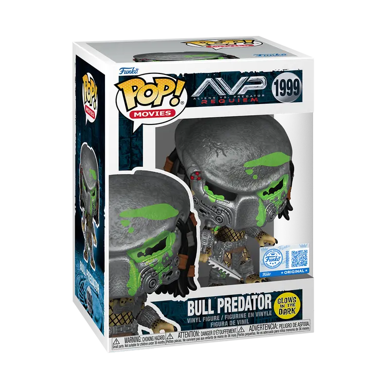 This is Funko POP! #1999, part of the Predator Movies lineup. The Bull Predator is rendered in full bloody battle-worn detail, and when the lights go out, the glow effect kicks in for a display that hits different than your standard pop. Whether you're a Predator franchise die-hard, a variant hunter, or a reseller stocking high-demand specialty figures, this one earns its spot.