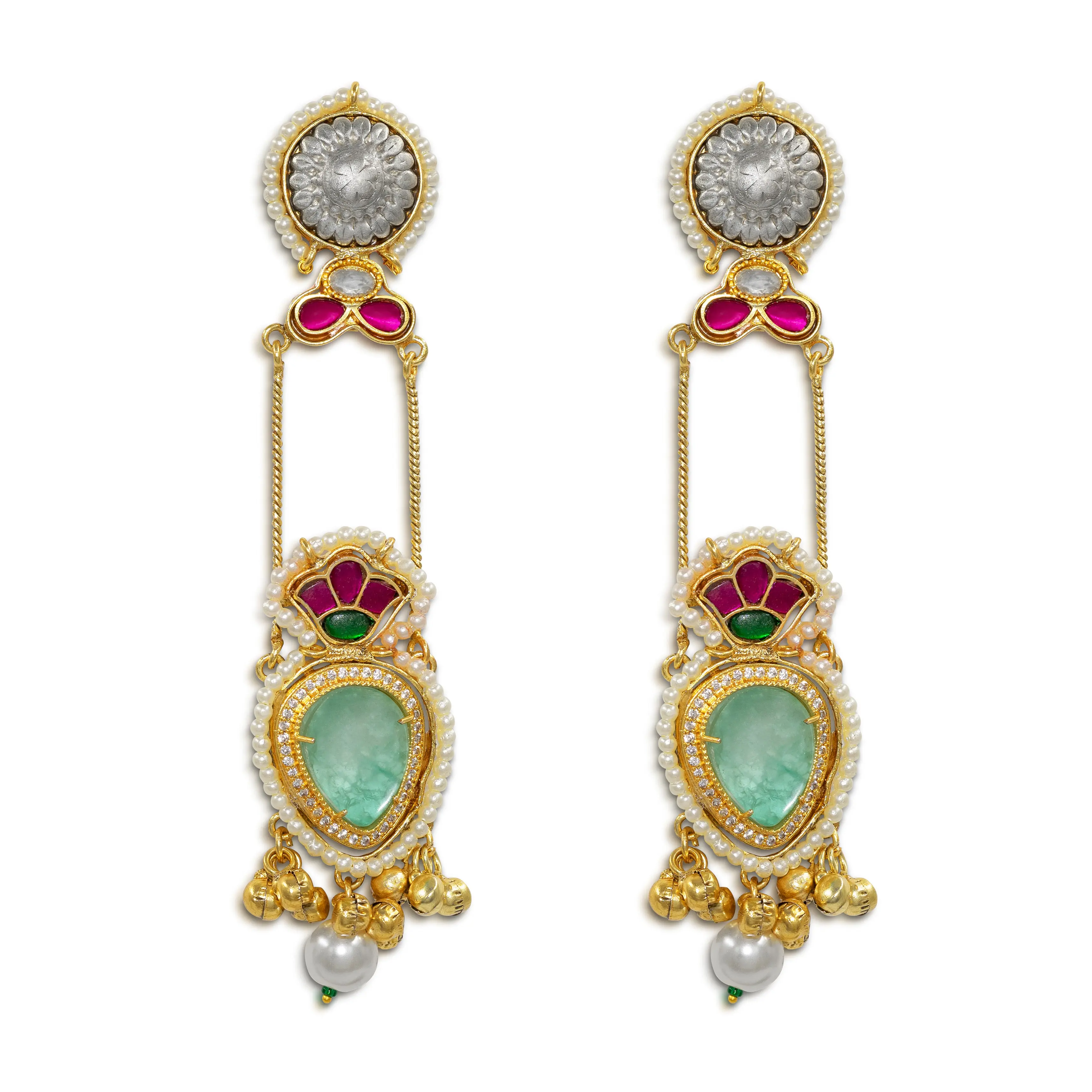 Kashmiri Heritage Drop Earrings with Pearl Accents