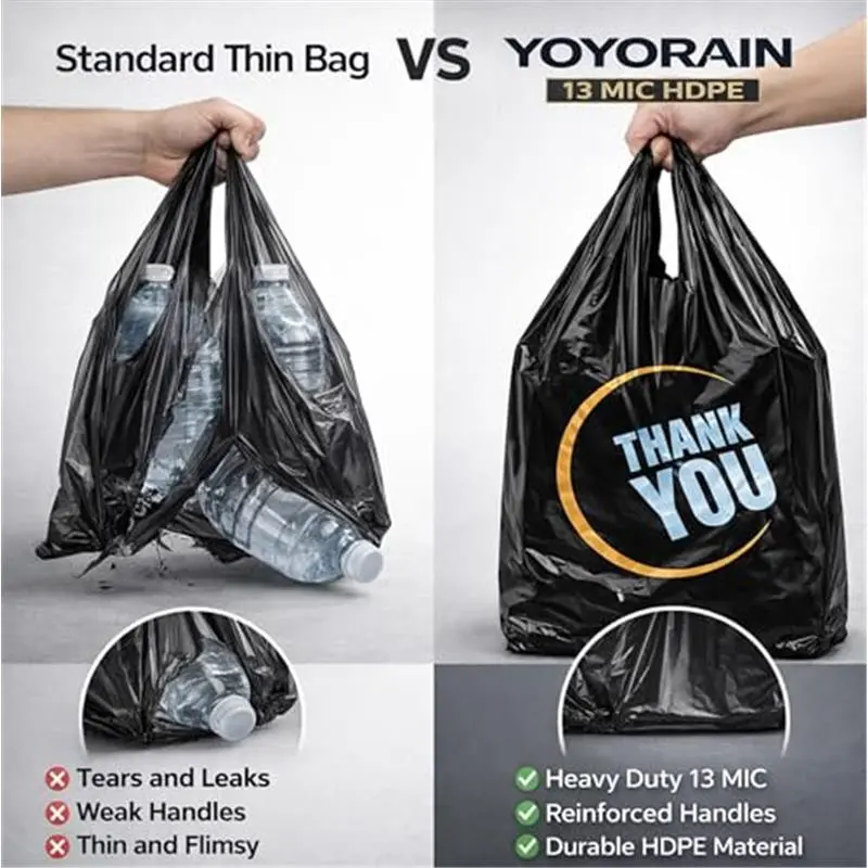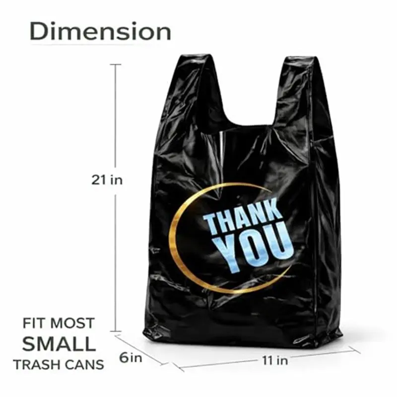 · BLACK THANK YOU BAGS -Provide your customers with a convenient way to carry purchased merchandise by bagging items in this white design large thank you bag. It’s versatile enough for use with food or retail items.