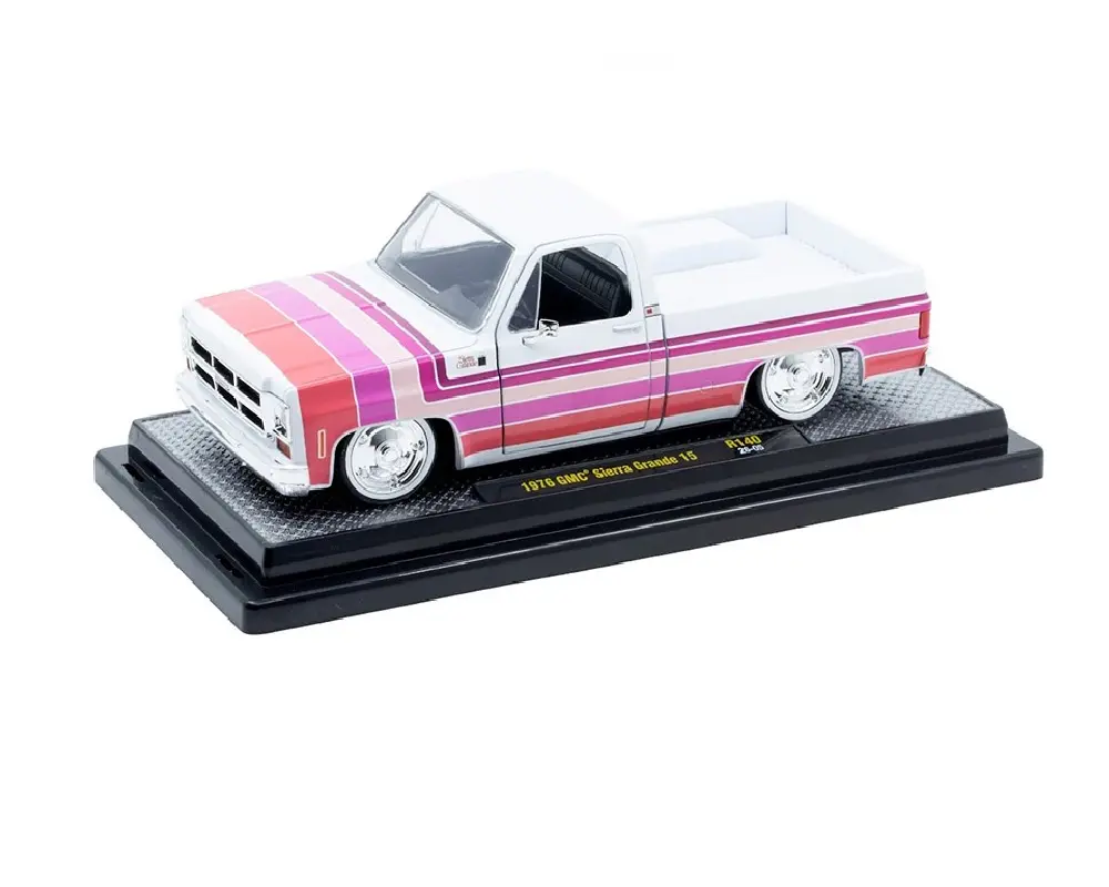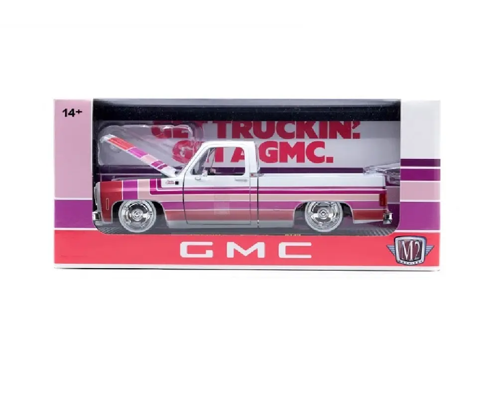 M2 Machines 1:24 1976 GMC Sierra Grande 15 White and Pink Diecast Model Truck 40300-140A-7D