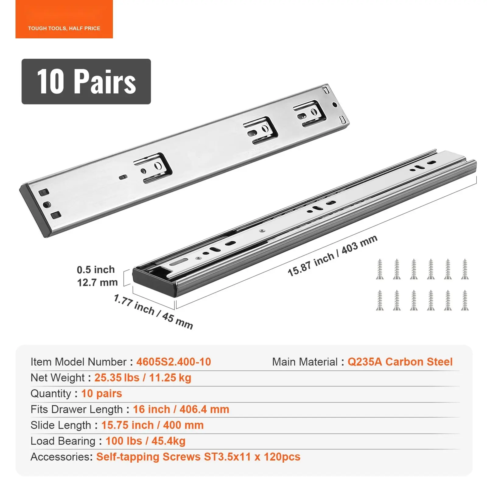 ·6 Universal Sizes: Available in 14", 16", 18", 20", 22", and 24" universal sizes, compatible with various mainstream drawer slide brands, providing flexibility for replacement.