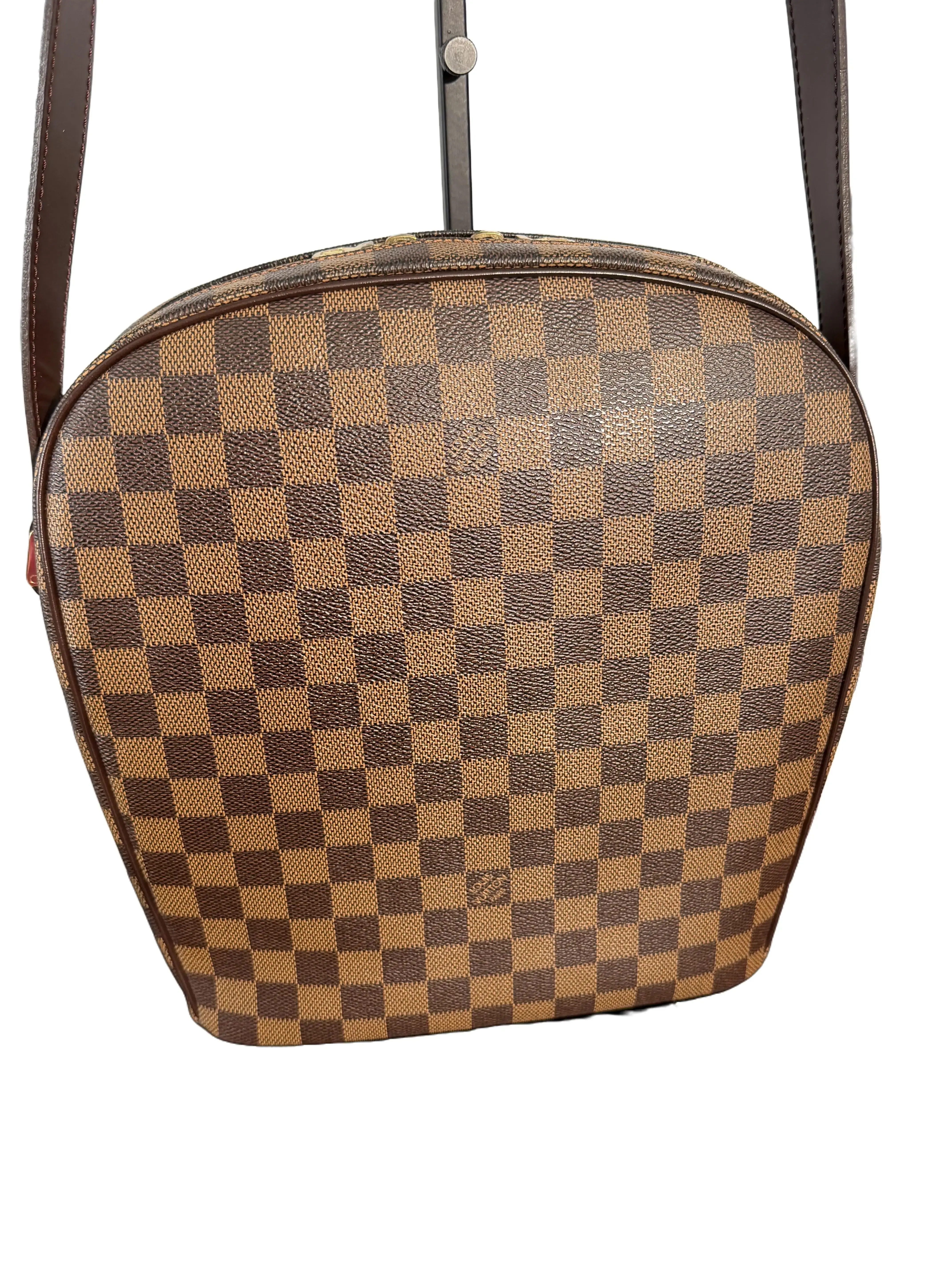 This pre-owned bag retains its iconic look. The Damier Ebene pattern adds a touch of sophistication. The canvas material ensures durability. A must-have for Louis Vuitton enthusiasts.