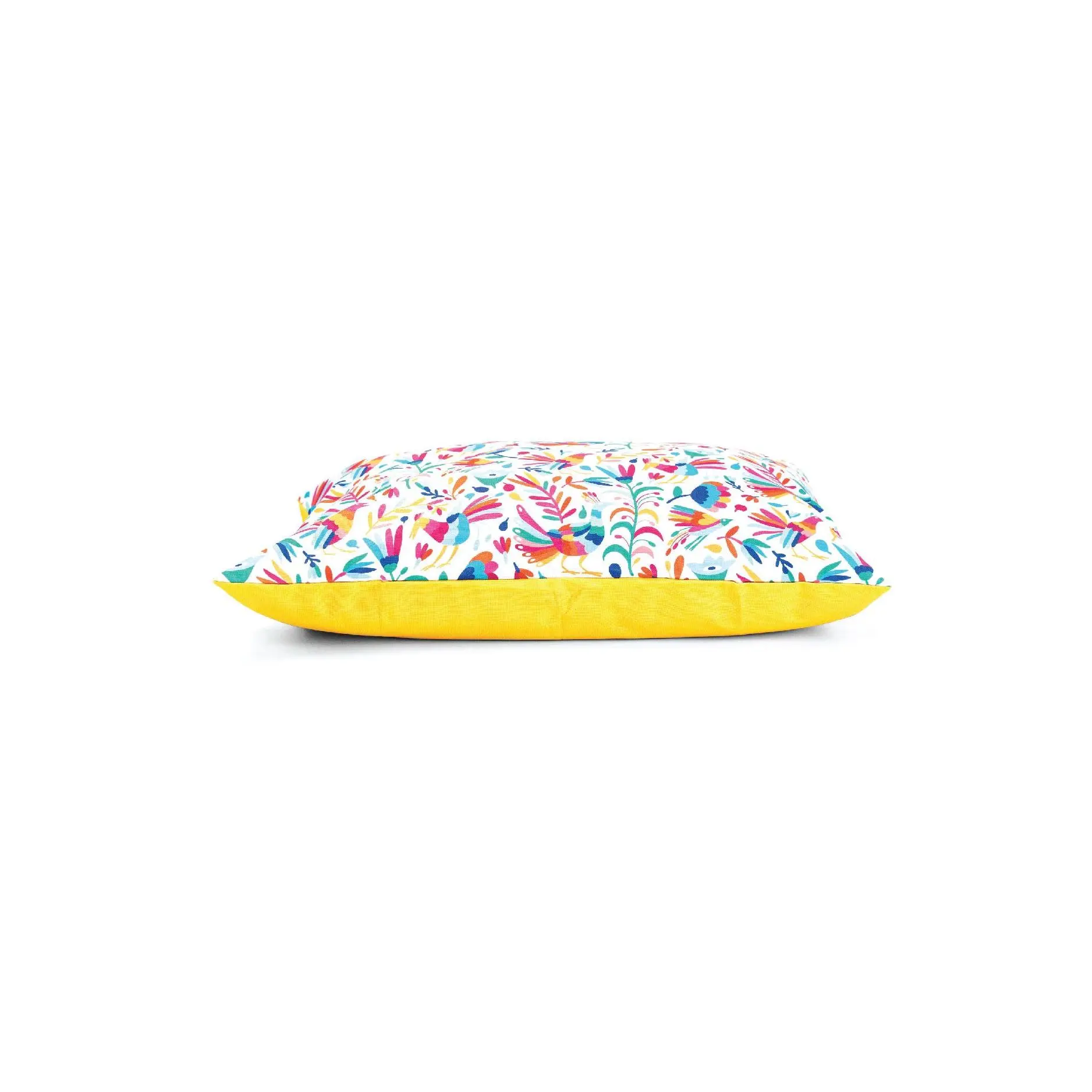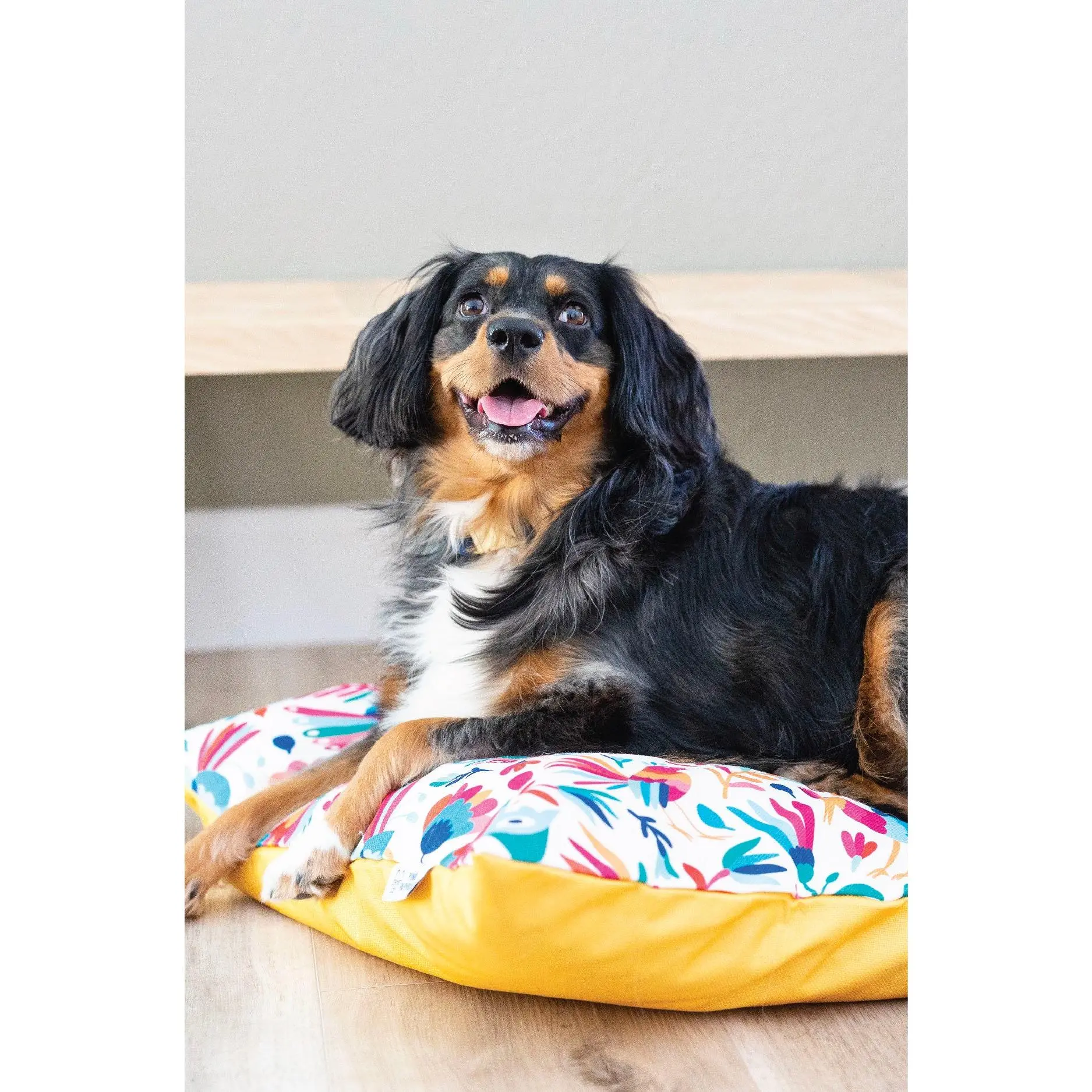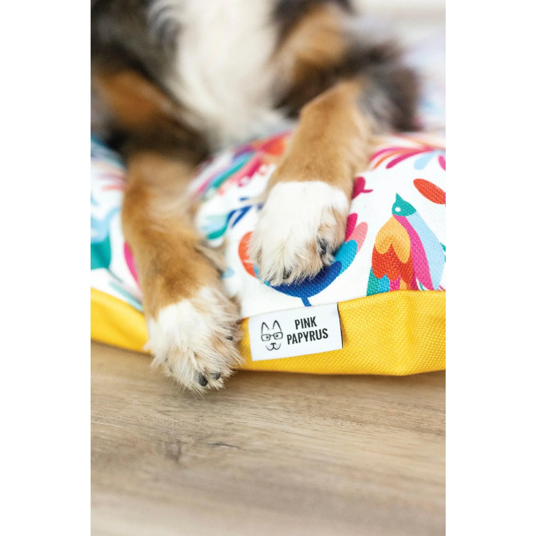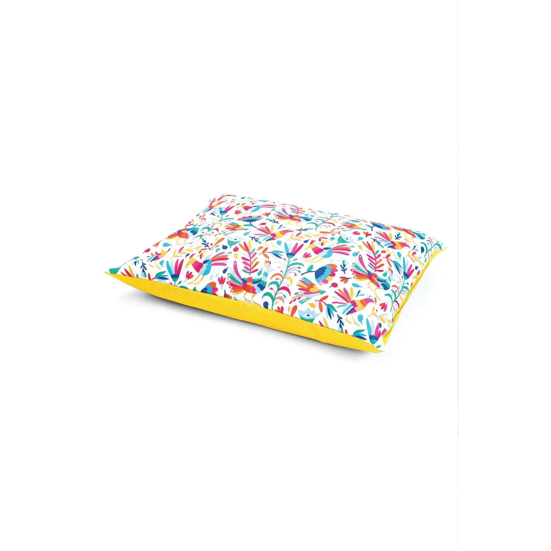 This eye-catching Otomi bed features a colorful floral and bird motif. Invoking inspiration from the natural surroundings of Mexico, this pattern is bound to brighten any space.