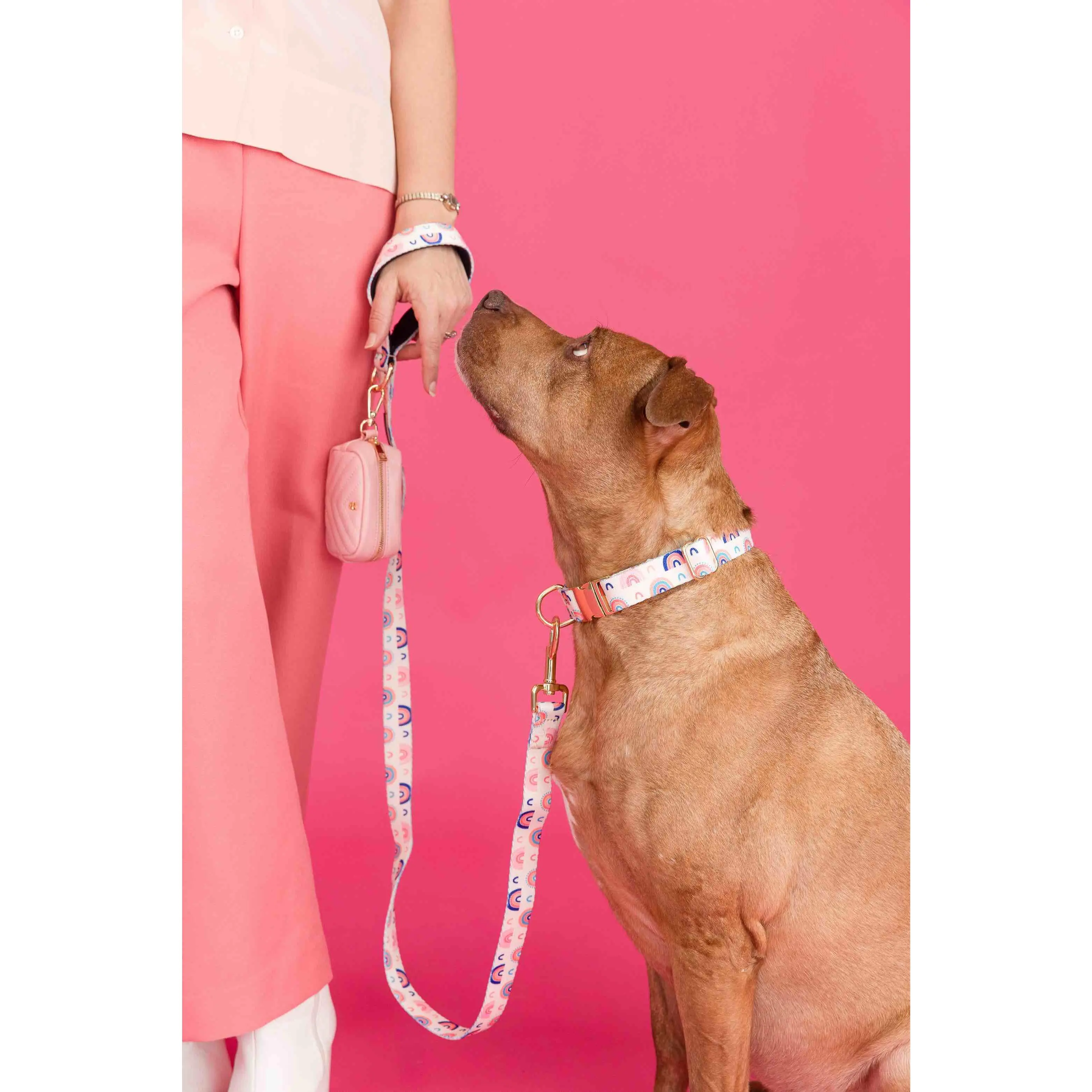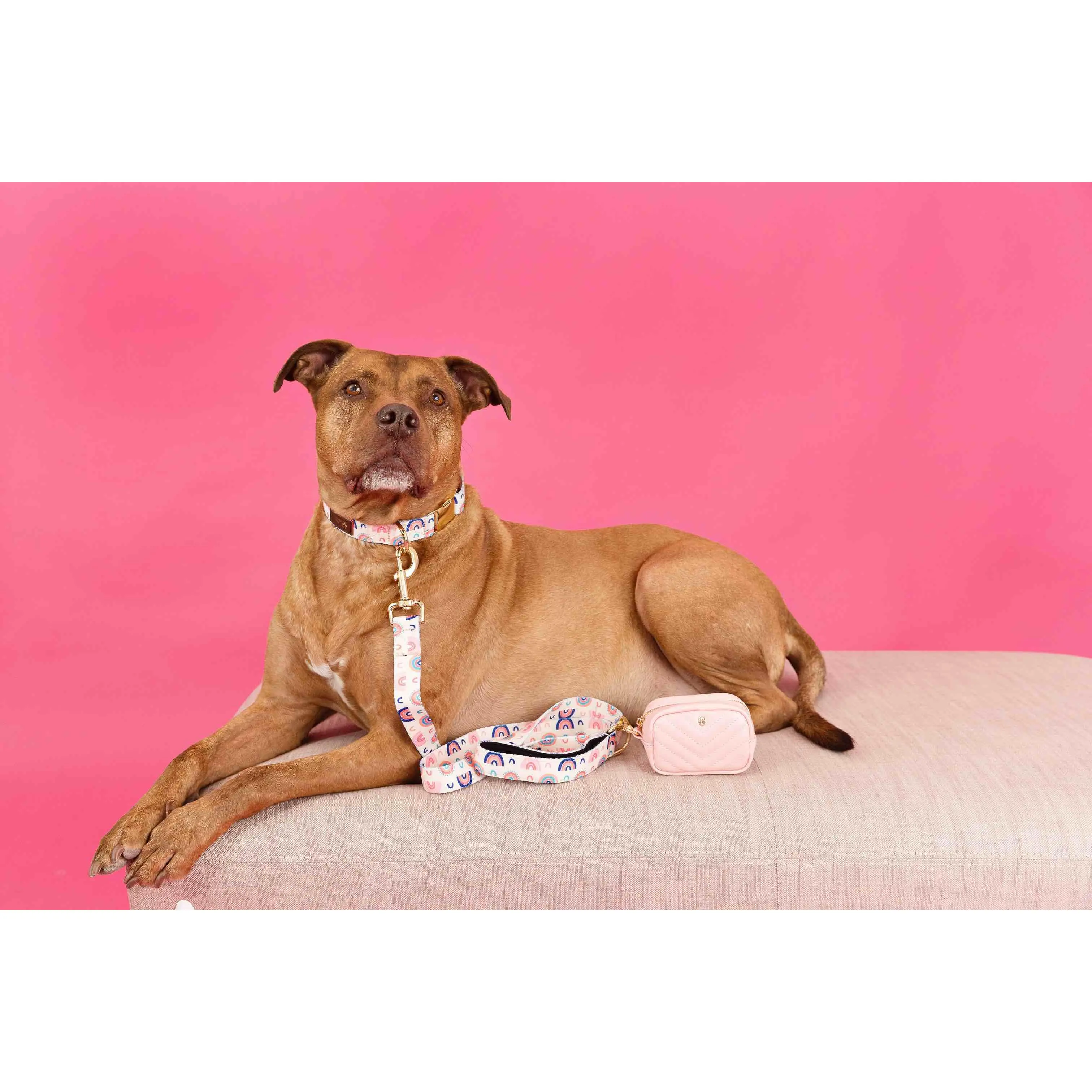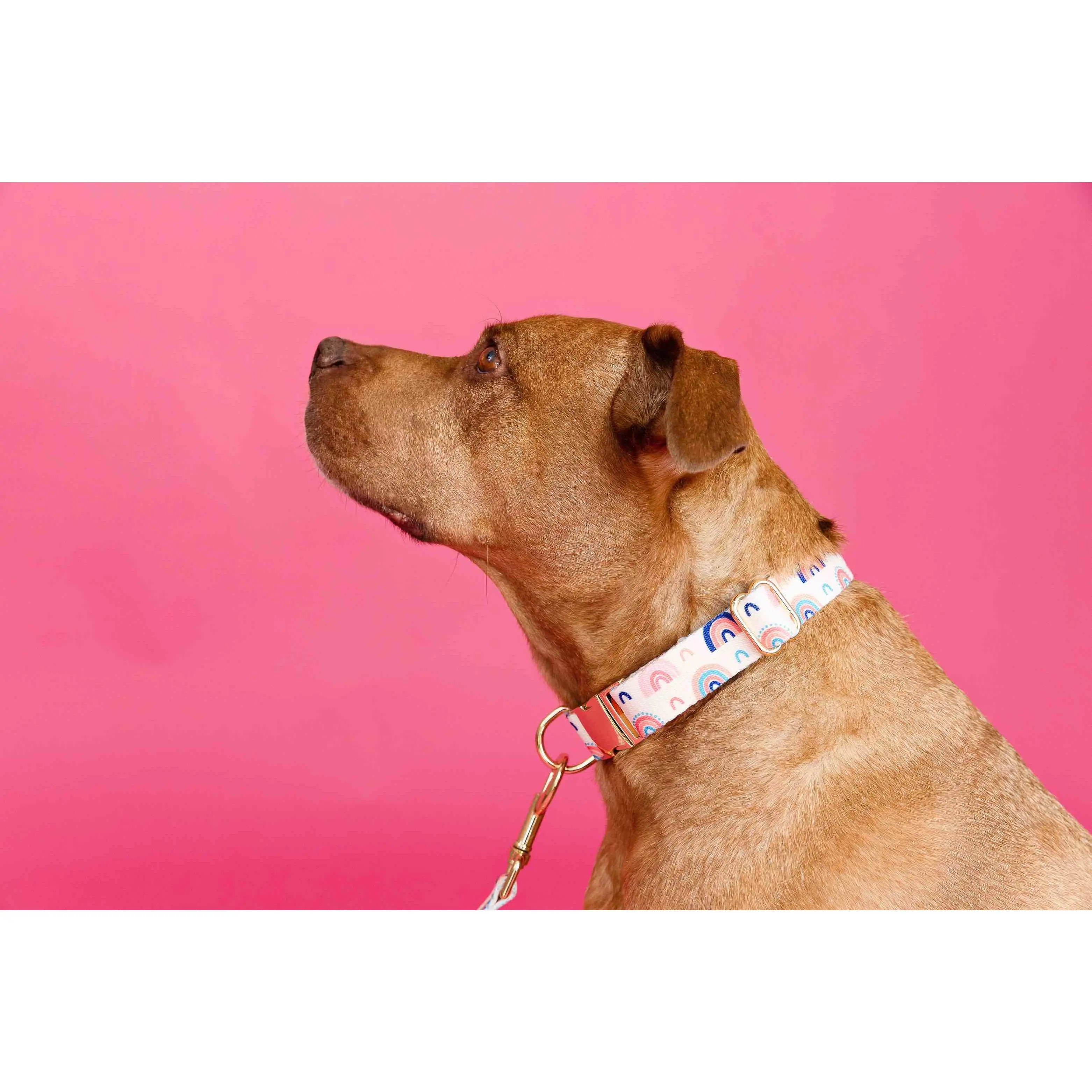 Clarke is pure joy in a collar—playful rainbow on pink that instantly makes your dog stand out and feel special. Made to last through every walk, it replaces the boring collars that fade into the background and never spark a second look.