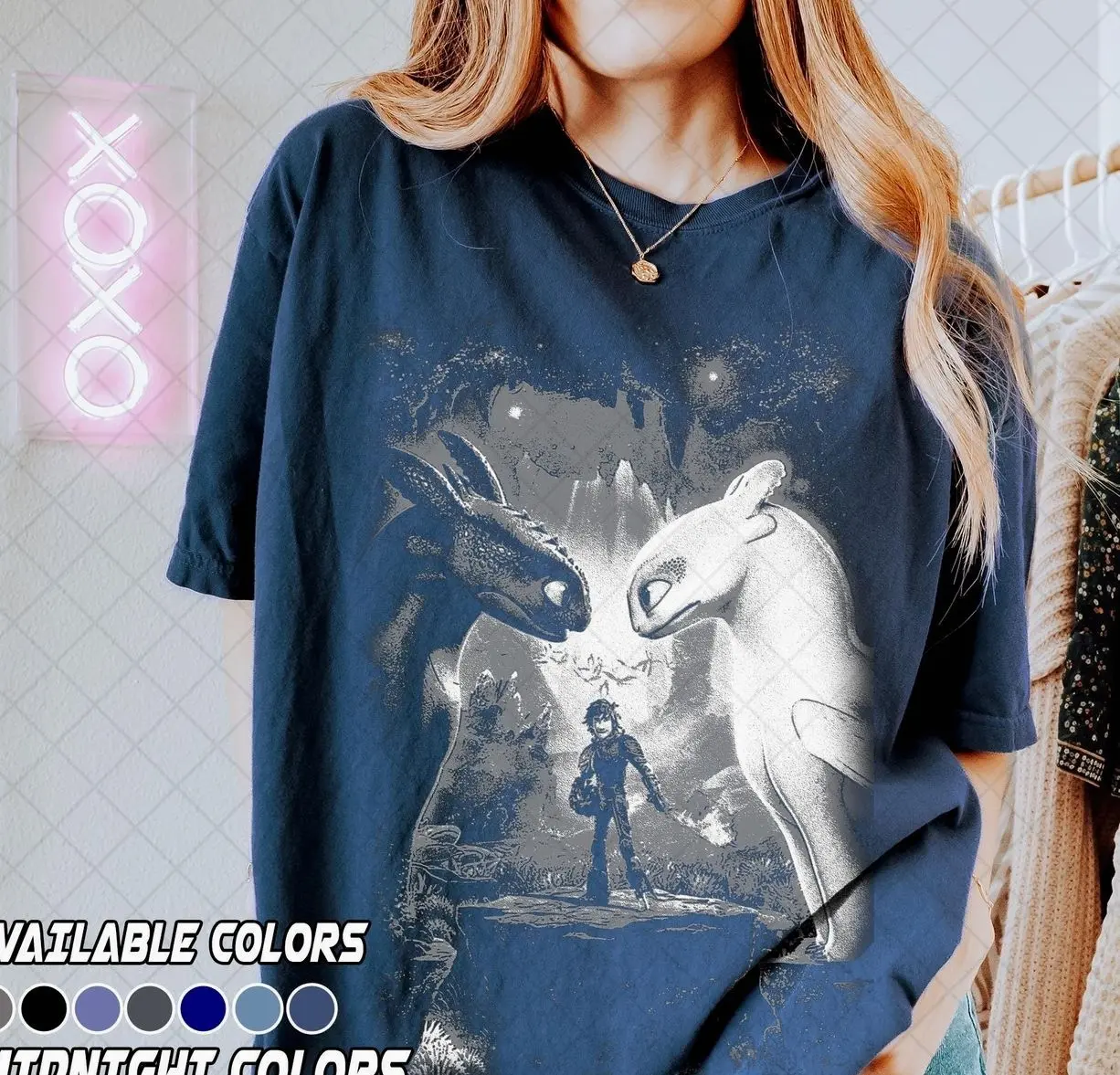 Comfort Colors Night - Light Fury And Hiccup Shirt, Httyd Dragon Couple Tee, Toothless Fantasy Gift, Gift For Women & Men Unisex T-shirt