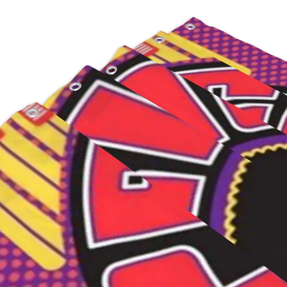 Step into a bold, retro vibe every time you step into the shower. This polyester shower curtain features a vibrant, 1970s-inspired portrait with rich purples, golds, and reds that demand attention. The artwork channels vintage funk energy — think vinyl records, bold typography, and a soulful silhouette framed by graphic elements. It turns an ordinary bathroom into an expressive, music-loving space where color and personality set the mood. The one-sided print keeps the design crisp and bright on the front while maintaining a clean, neutral back. Hang it with your favorite hooks and let your bathroom tell a story of nostalgia and rhythm.