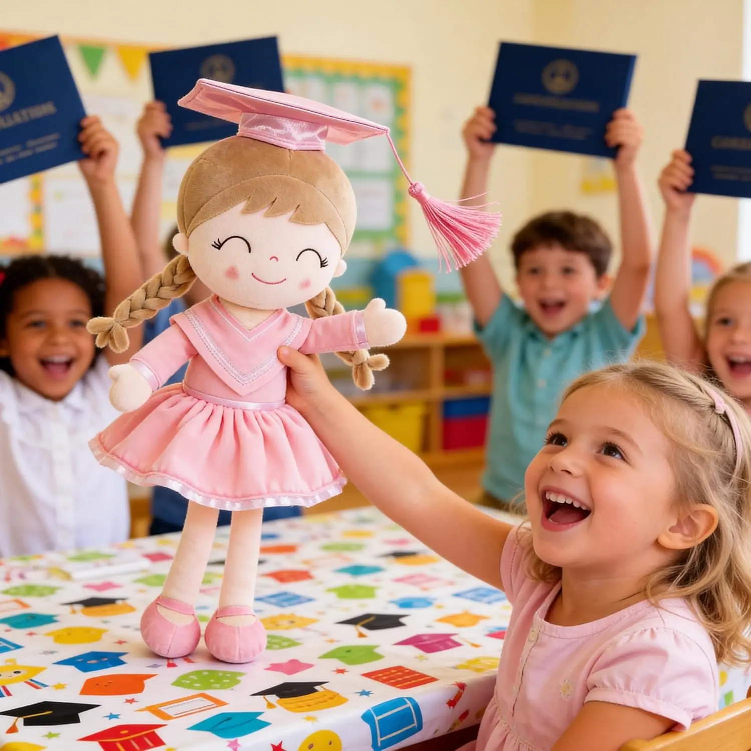 Perfect for parent-child bonding, this doll represents your love and support for her first major educational milestone.