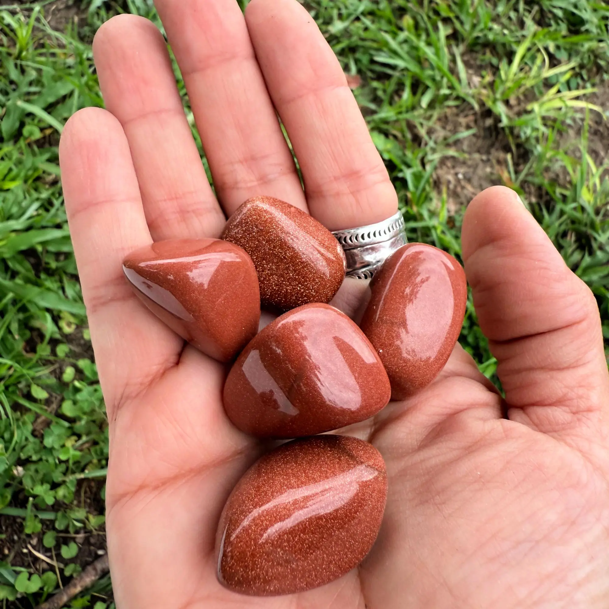 Awaken your inner drive with this polished Goldstone tumbled stone, known as the Stone of Ambition. Its warm, copper-infused sparkle reflects vitality, confidence, and creative energy. Crafted with intention, Goldstone helps turn tension into inspiration and encourages a grounded, optimistic mindset.