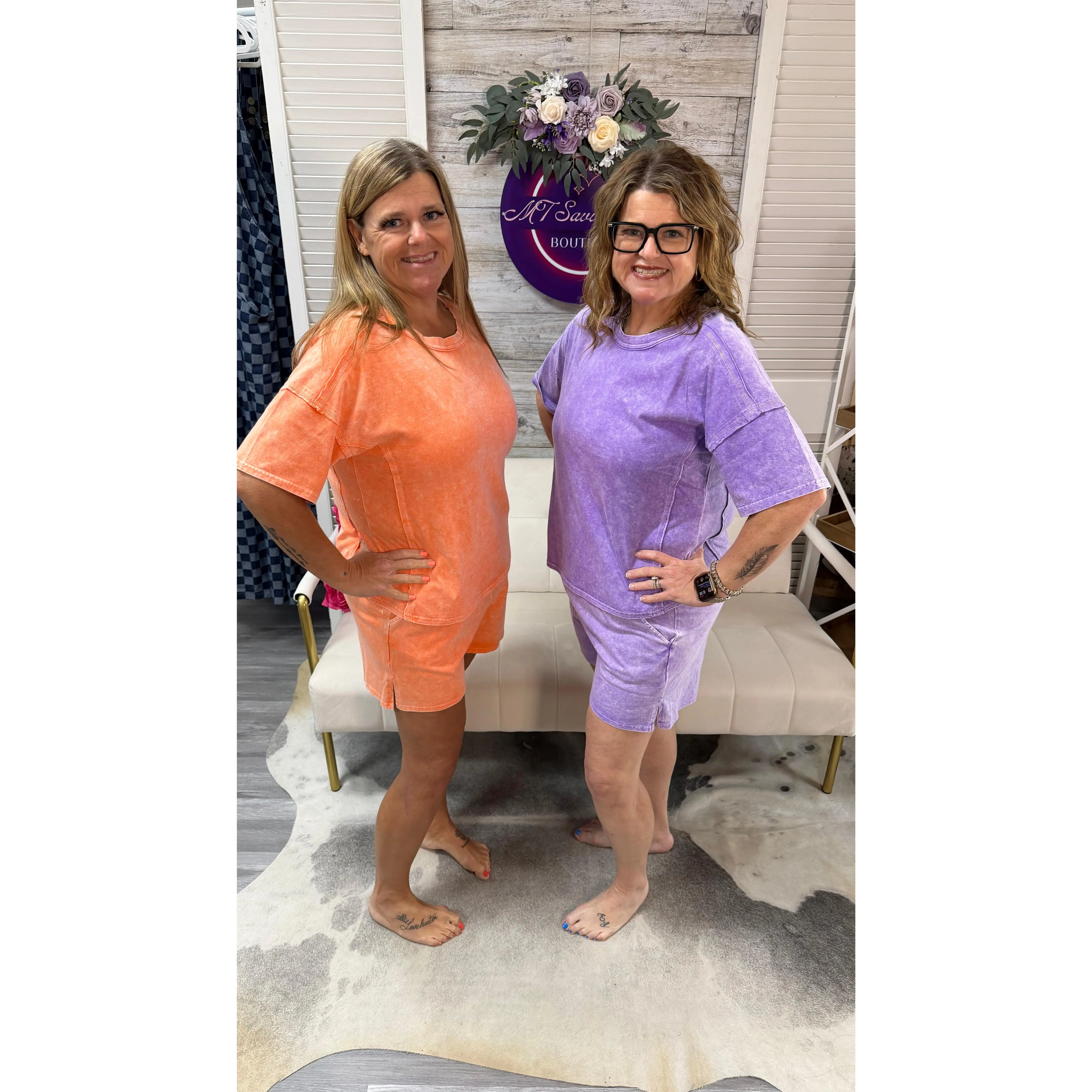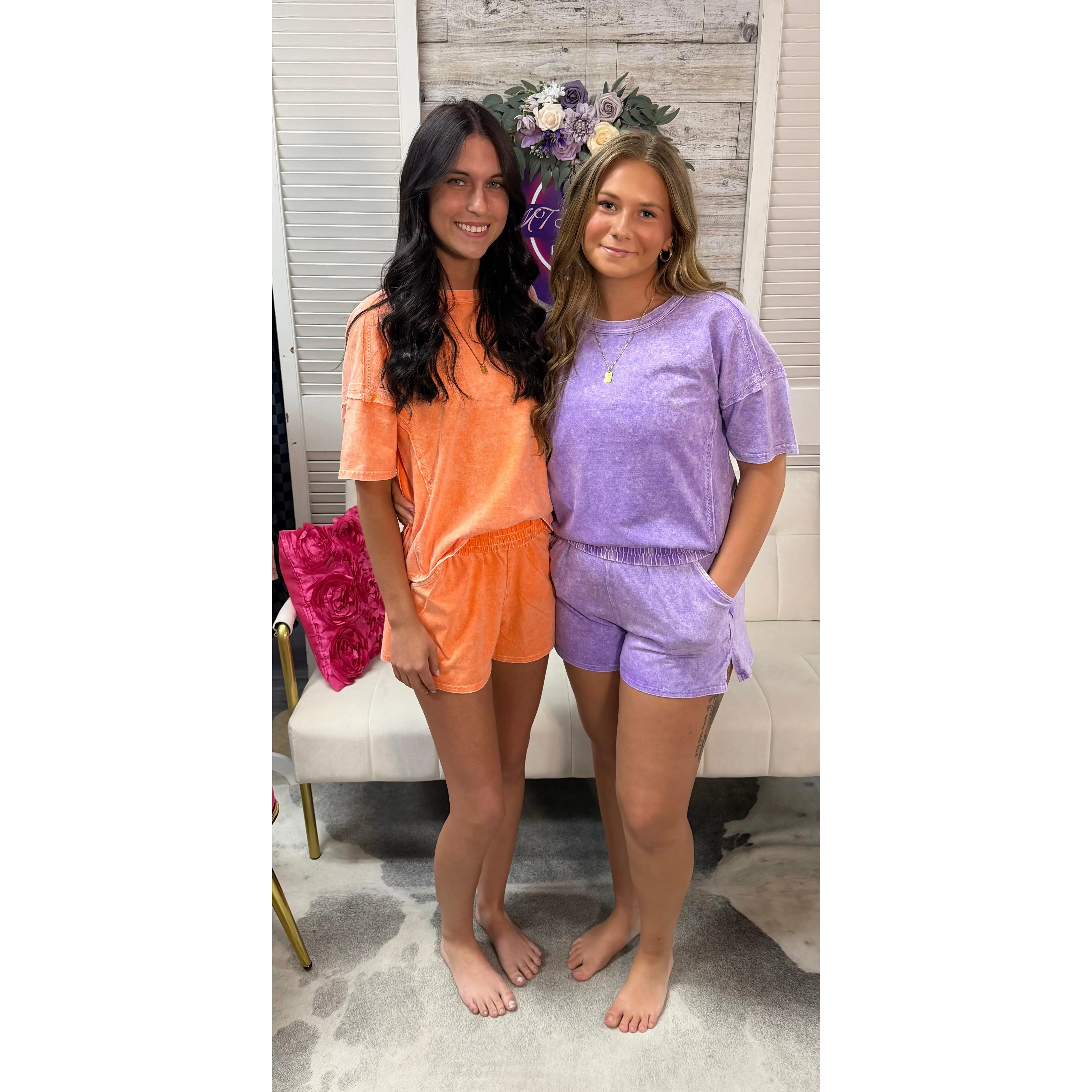 HALO SNOW WASHED SHORT SLEEVE TEE & SHORTS SET - ROUND NECK - ELASTIC WAISTBAND SHORTS