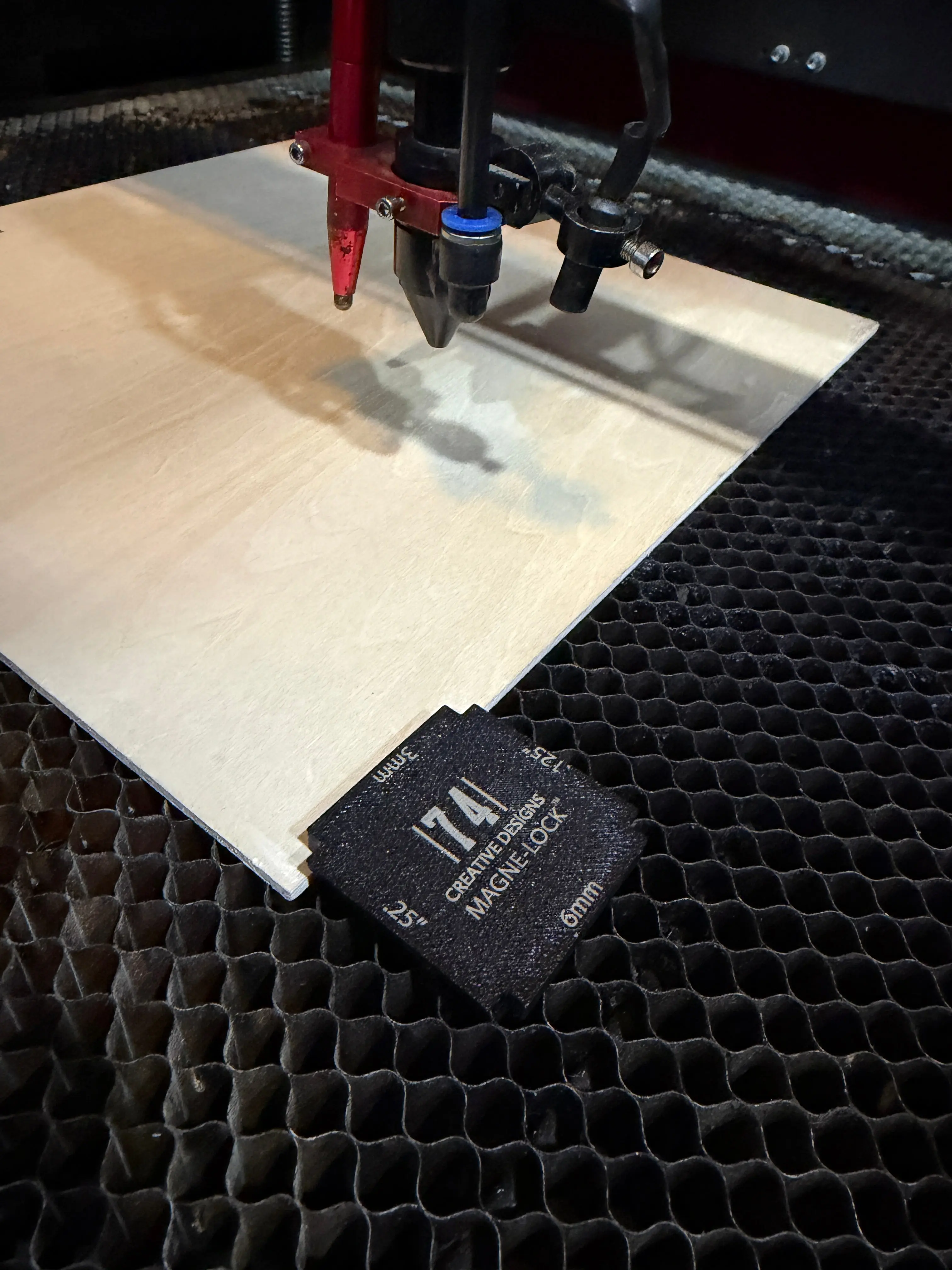 Keep your material flat and your cuts clean with the Magne-Lock™. Designed for CO2 and diode lasers, this magnetic hold-down helps secure your material to the laser bed so it doesn’t lift or shift during cutting or engraving.